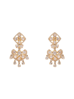 The earrings are handcrafted in 925 silver and studded with Moissanite Polki and Cubic zirconia diamond.