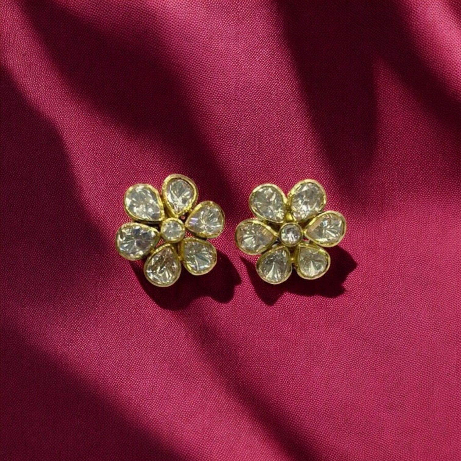 925 Silver Moissanite Polki Jhumar Necklace Set