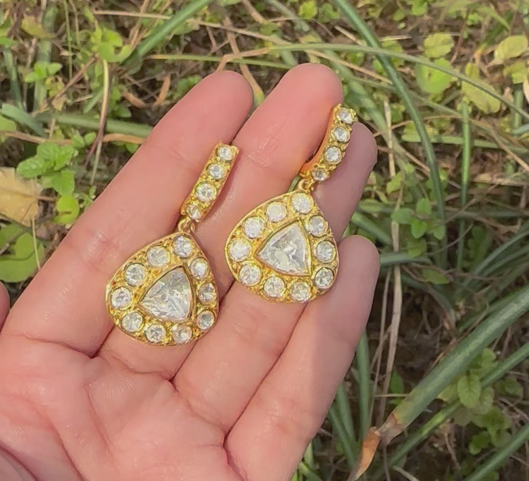 925 Silver Moissanite Polki Triangular Earrings