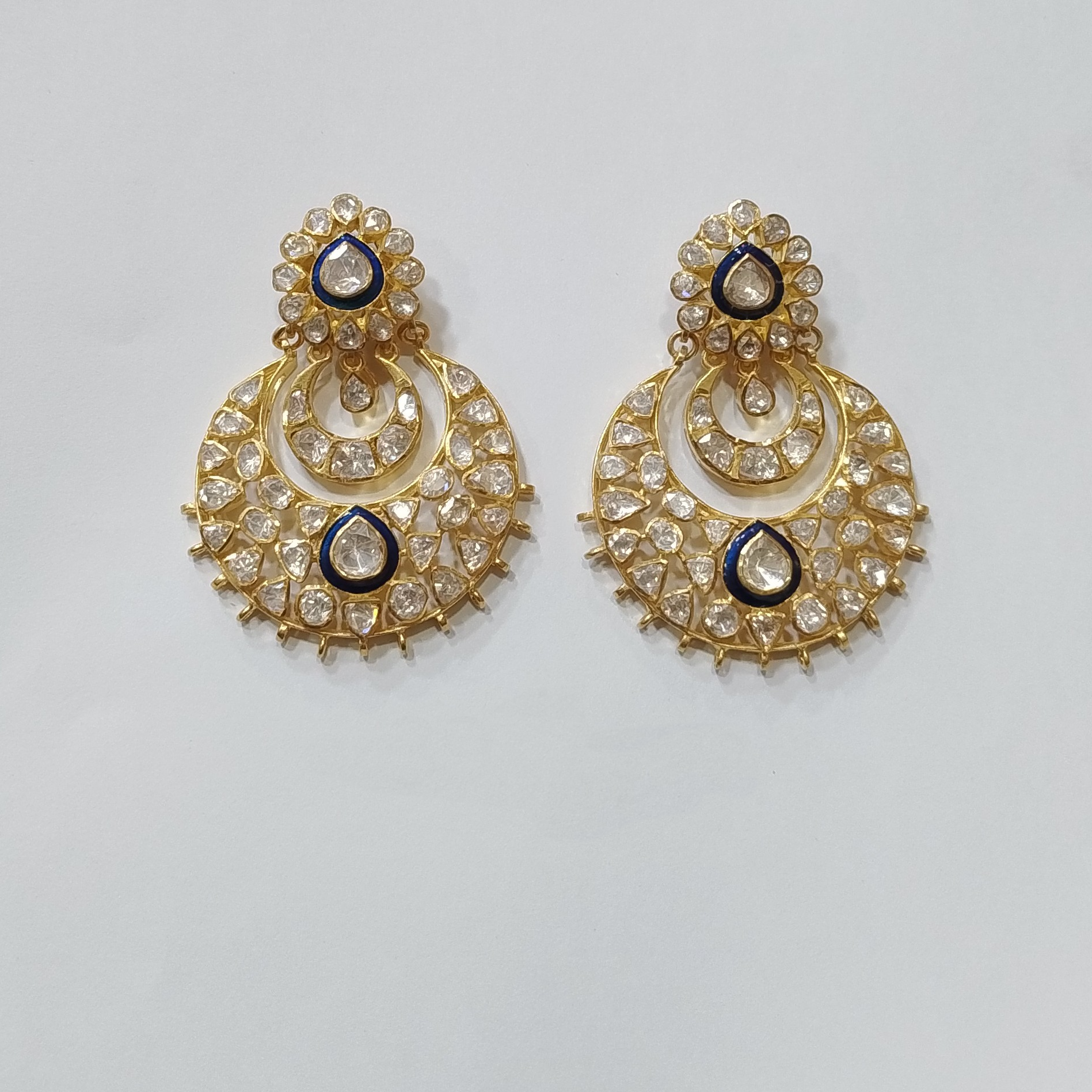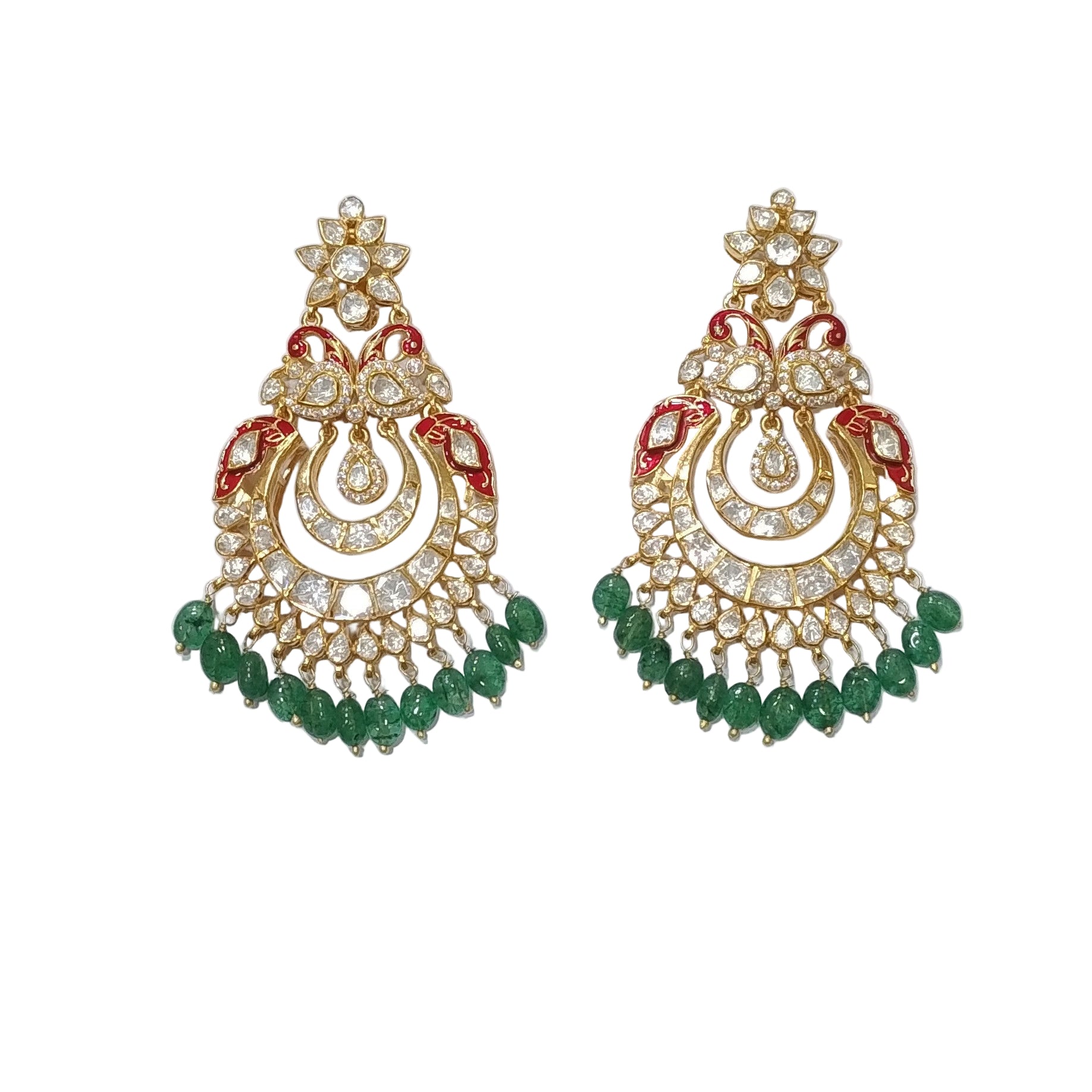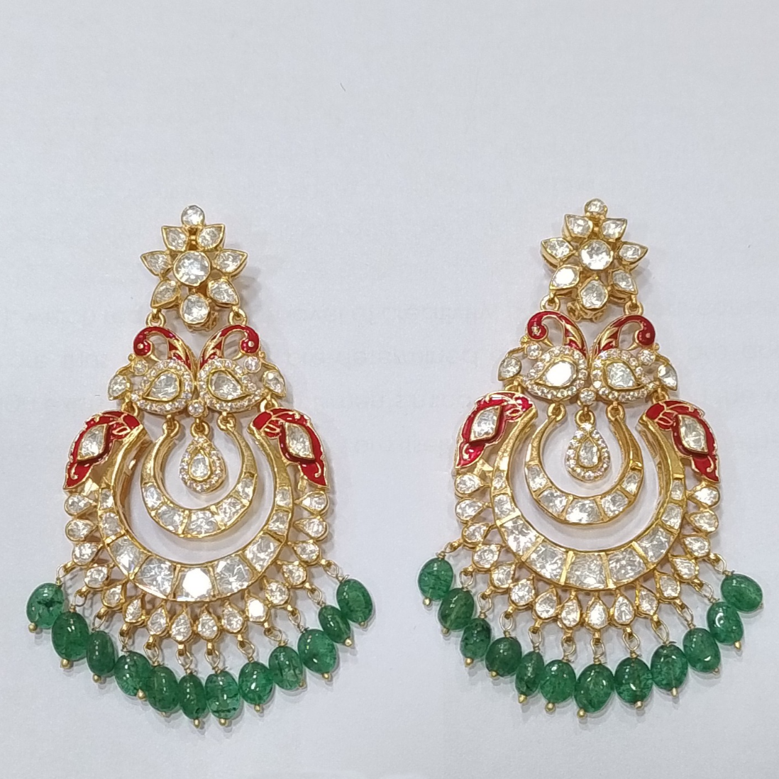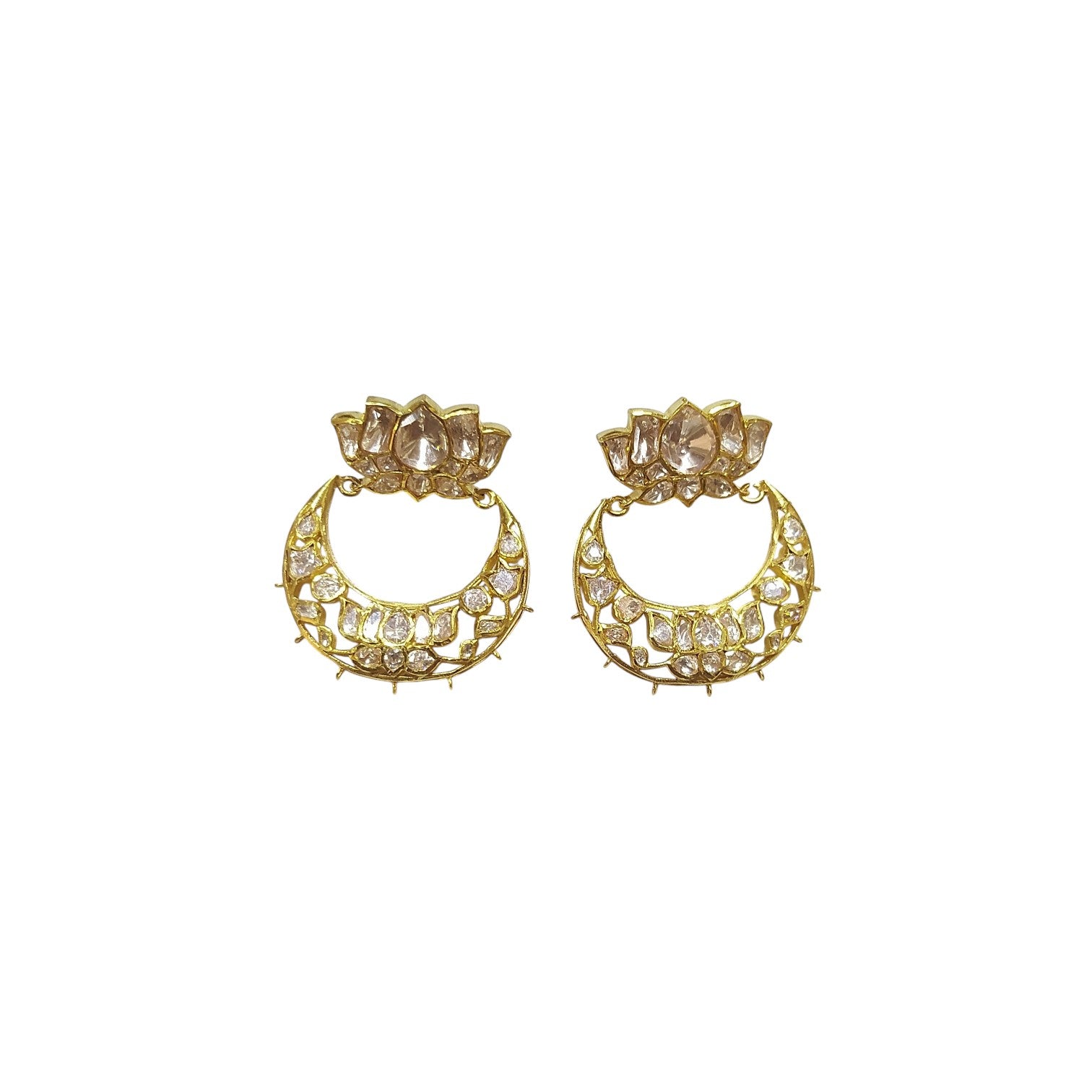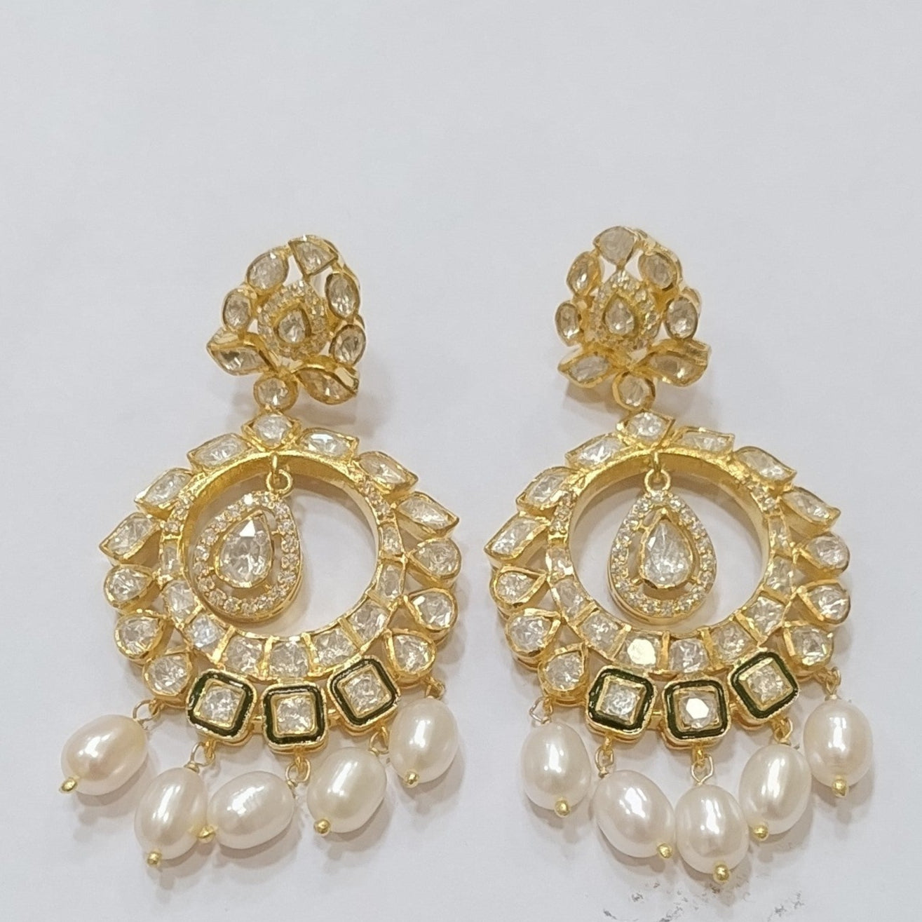 925 Silver Moissanite Polki Festive Chandbali Earrings