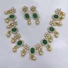 925 Silver Moissanite Polki Oval Emerald Necklace Set