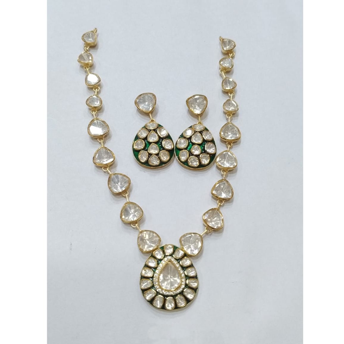 925 Silver Moissanite Polki Classic Necklace Set