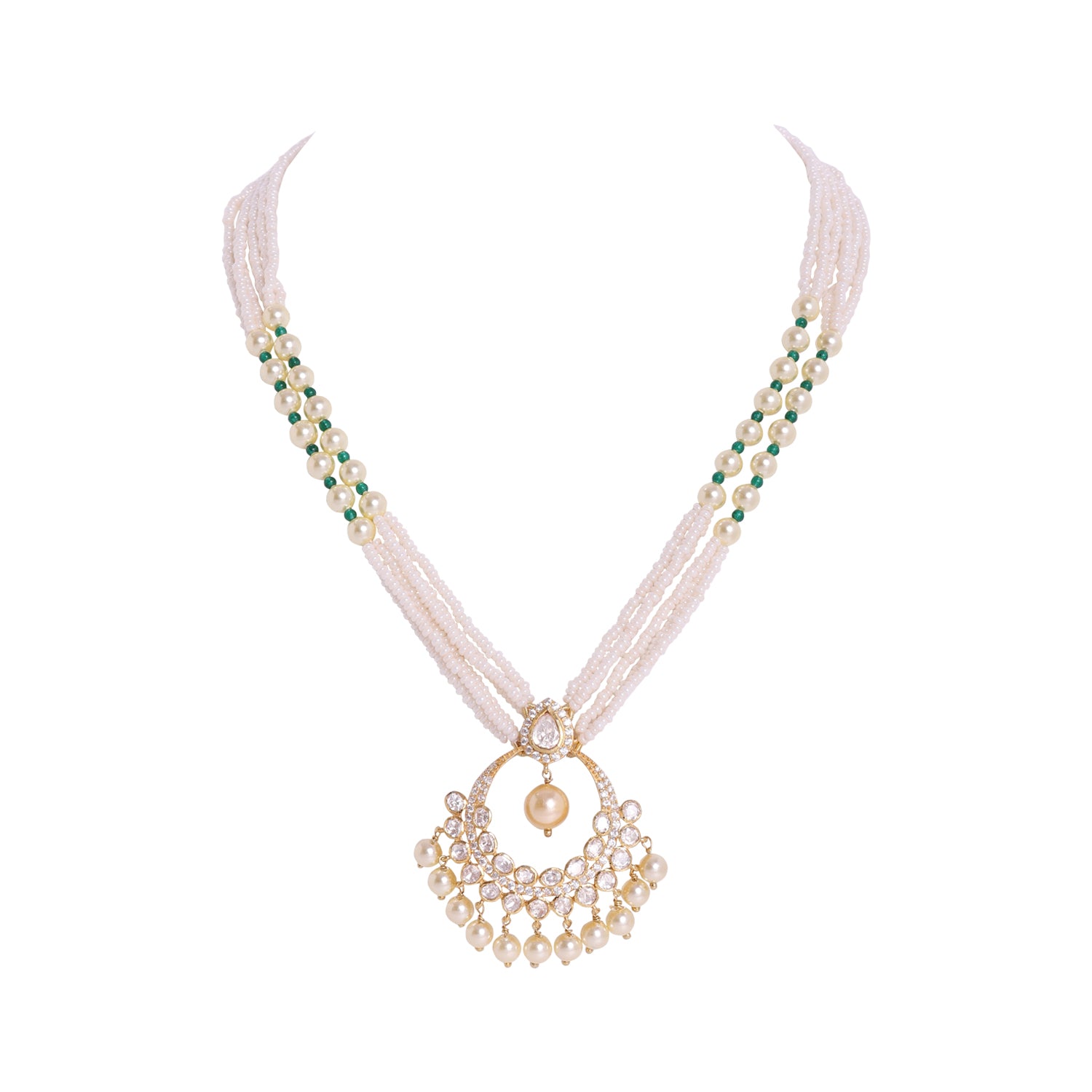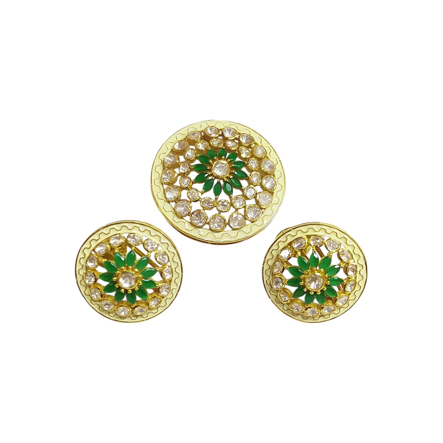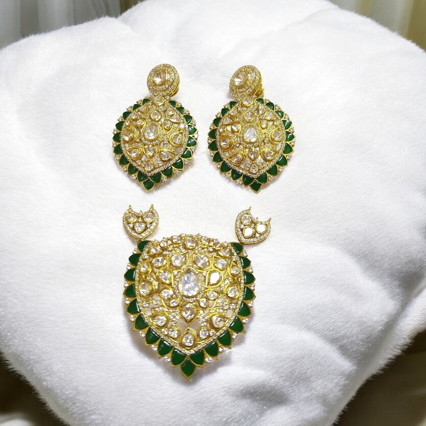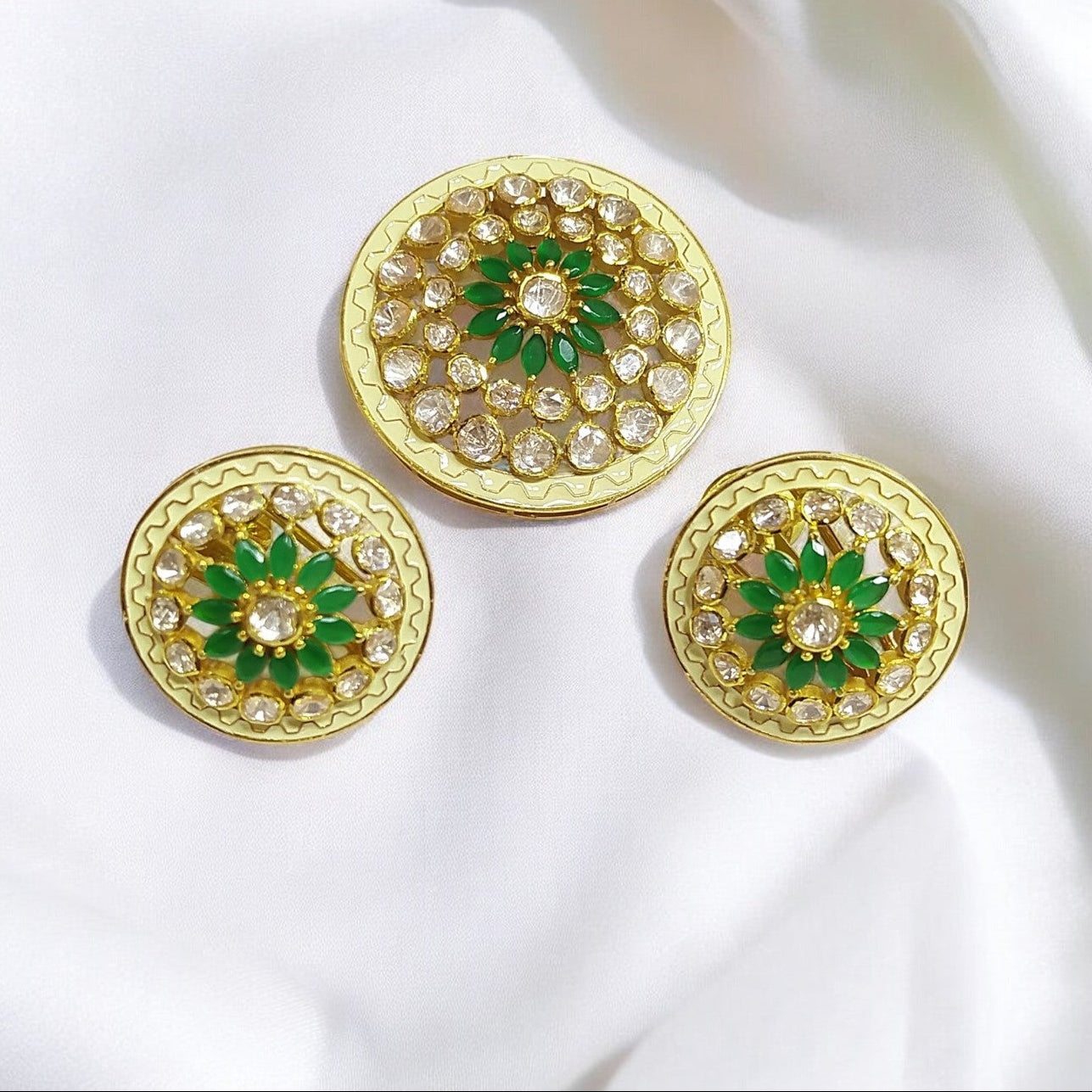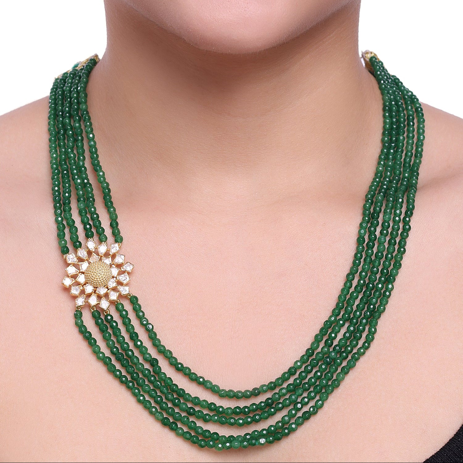925 Silver Moissanite Polki Green Mala Necklace Set