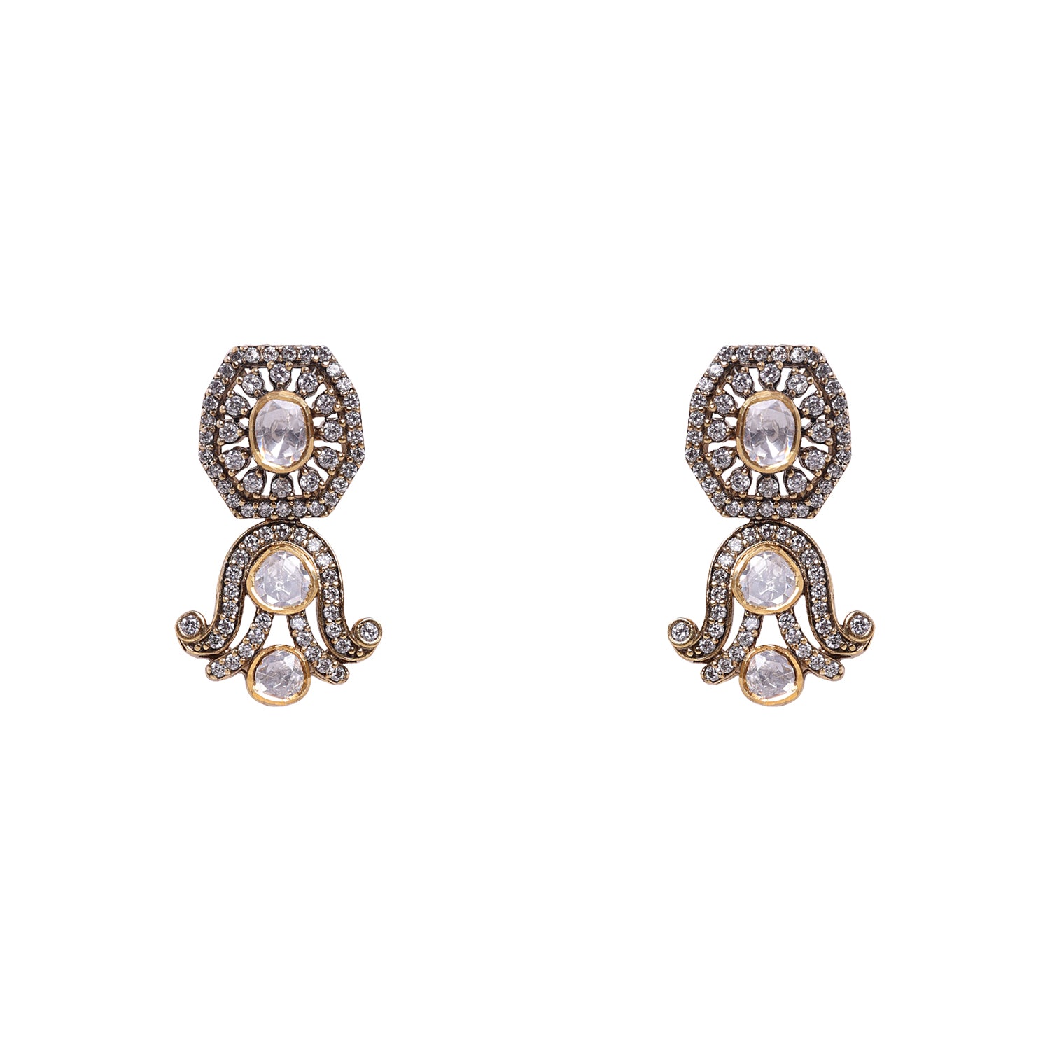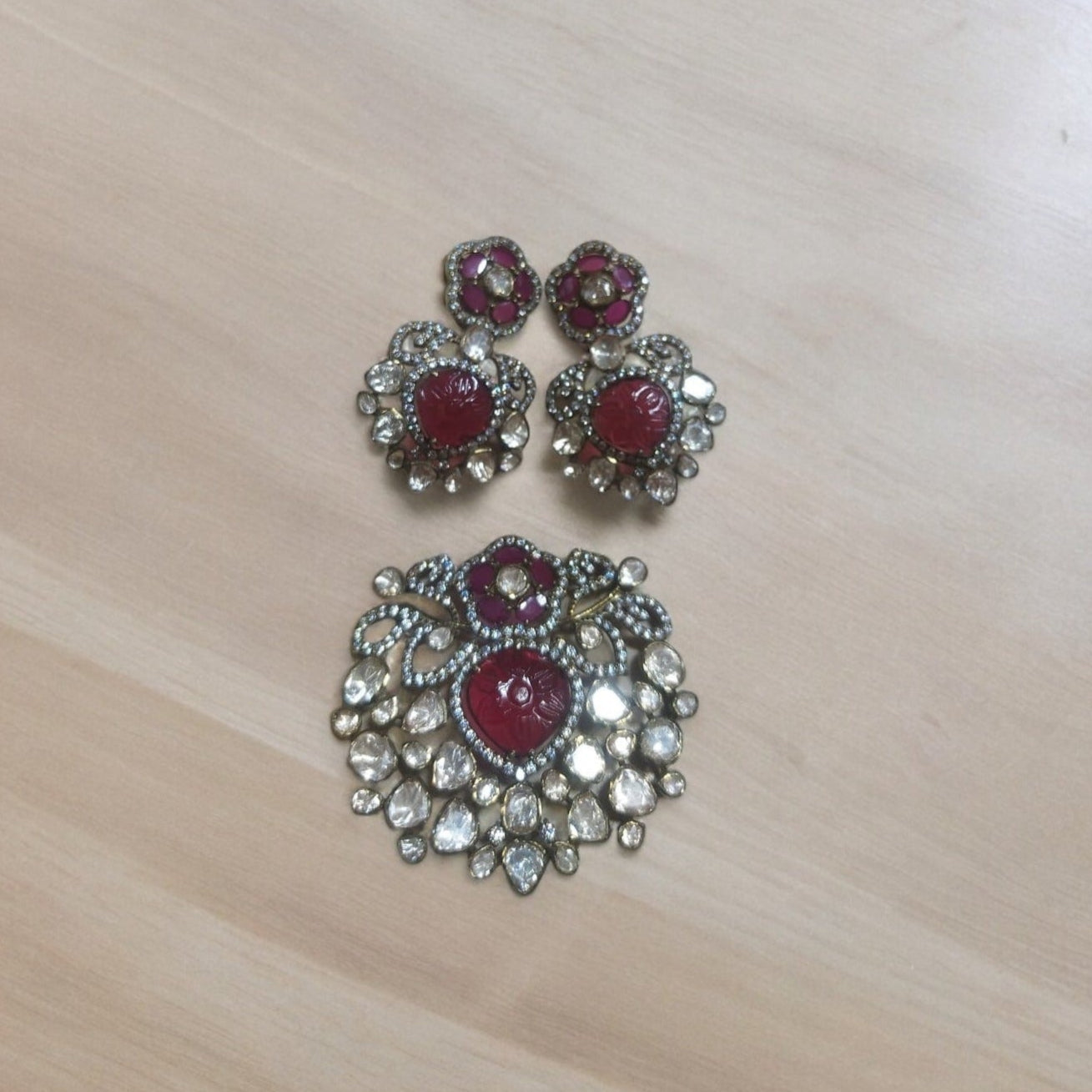 925 Silver Moissanite Polki Kalindi Necklace Set