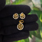 Featuring 925 silver pendant set with rhodium plating; earrings- bombay screw