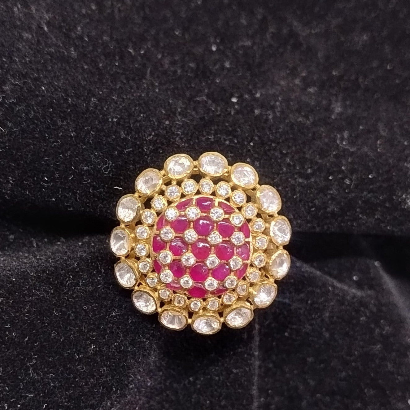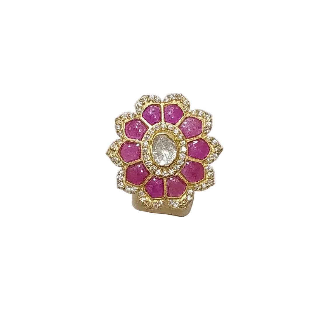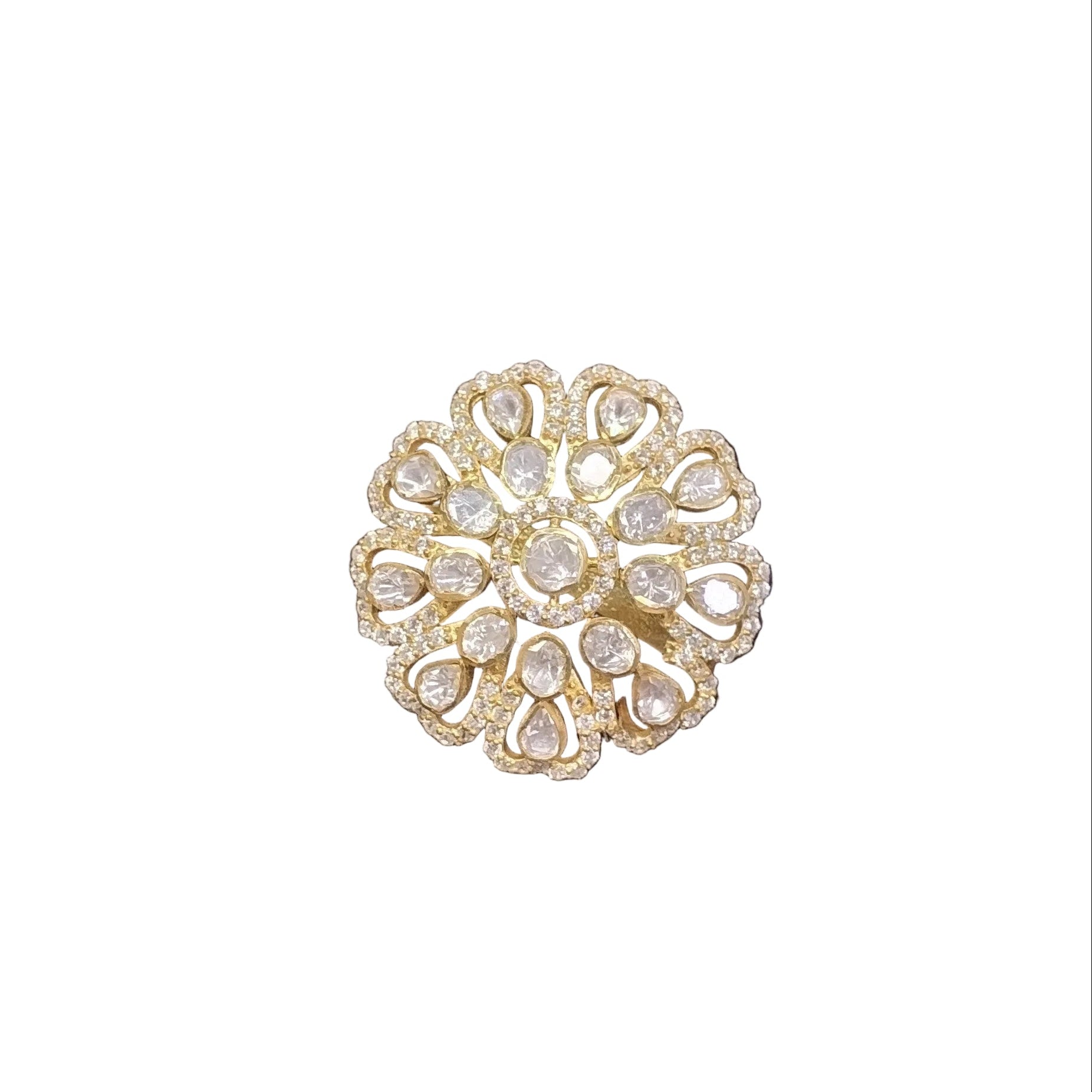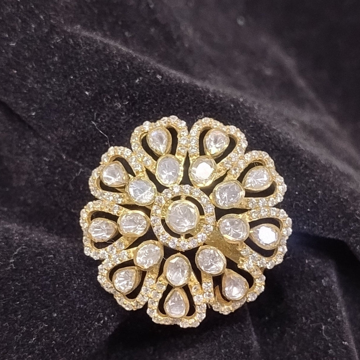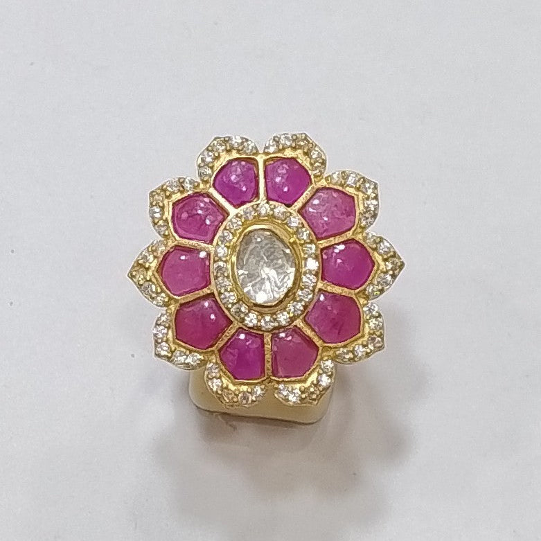 925 Silver Moissanite Polki Ring