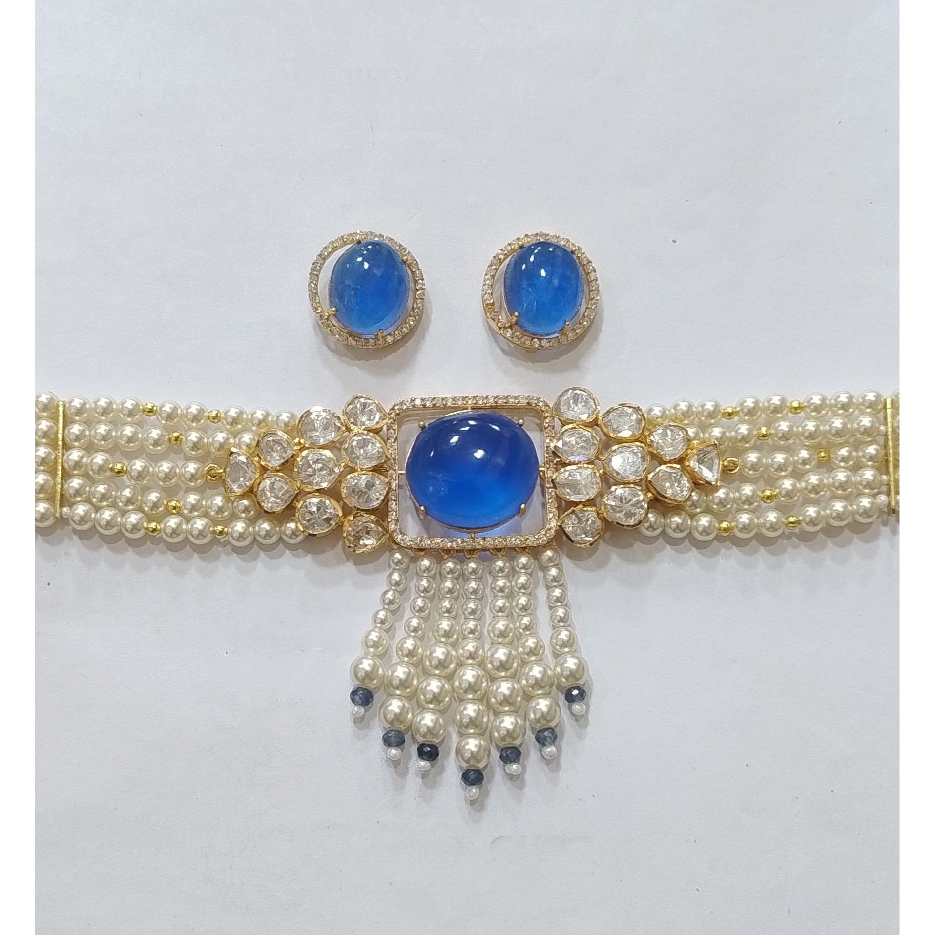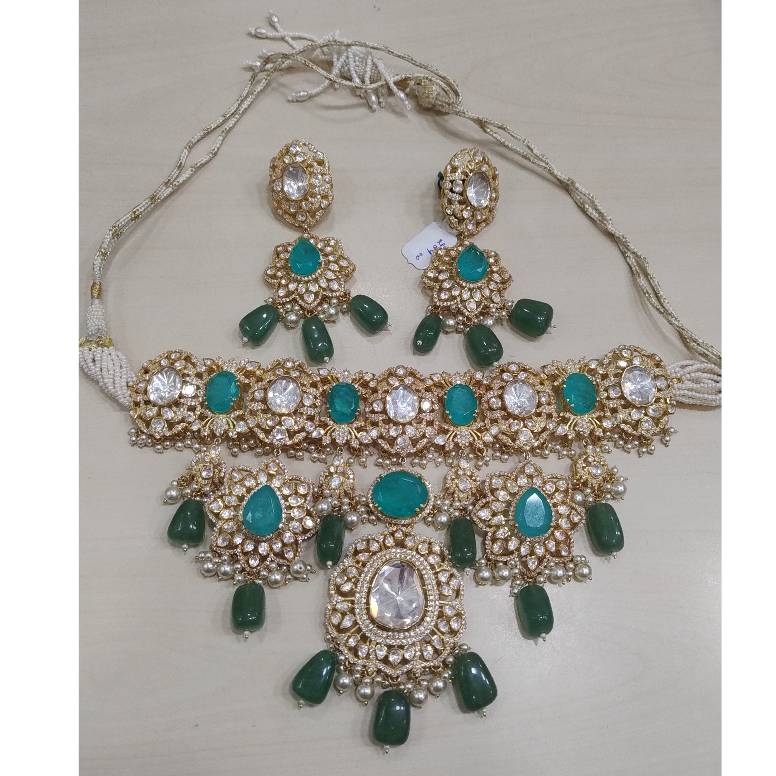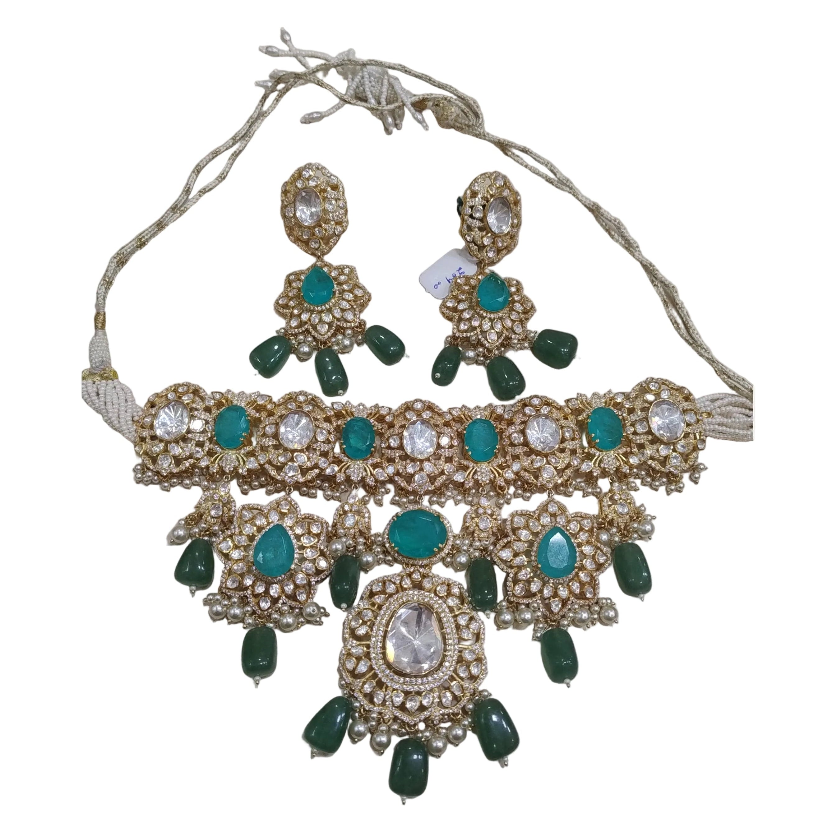 925 Silver Moissanite Polki Necklace Set
