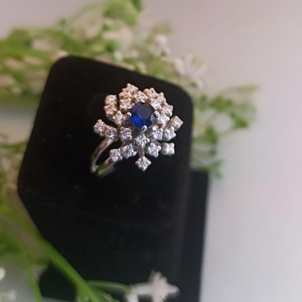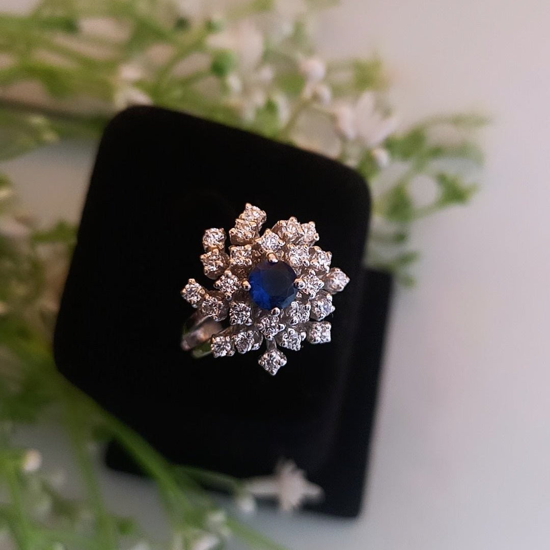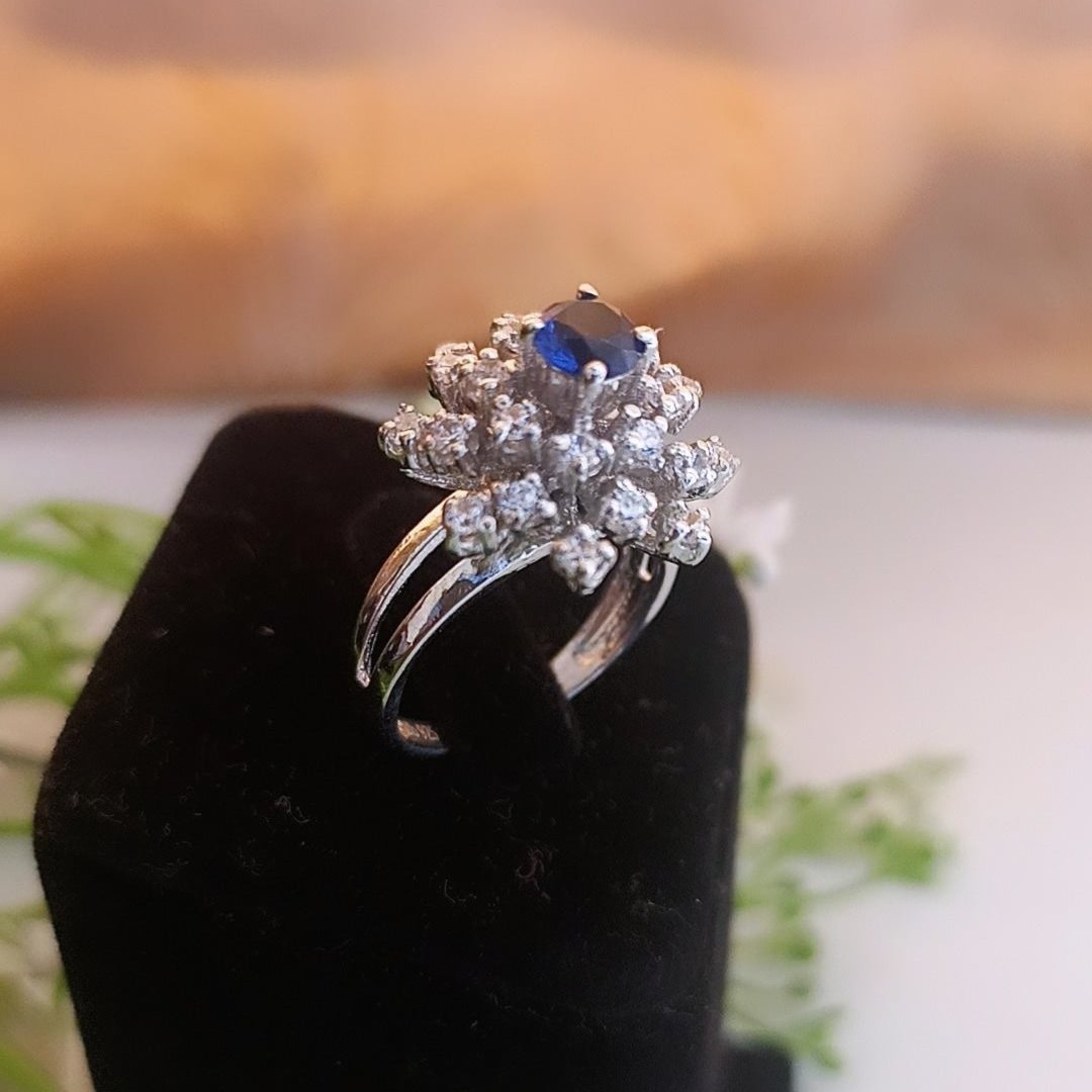 925 Silver Floral Sapphire Ring