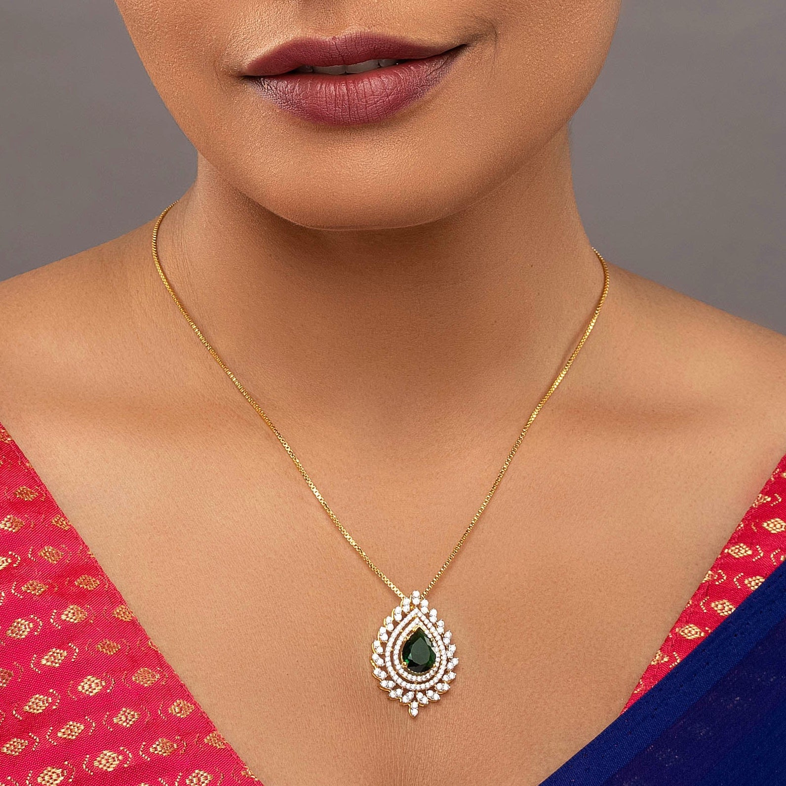 Stone Type : Cubic Zirconia with Synthetic coloured Green stone