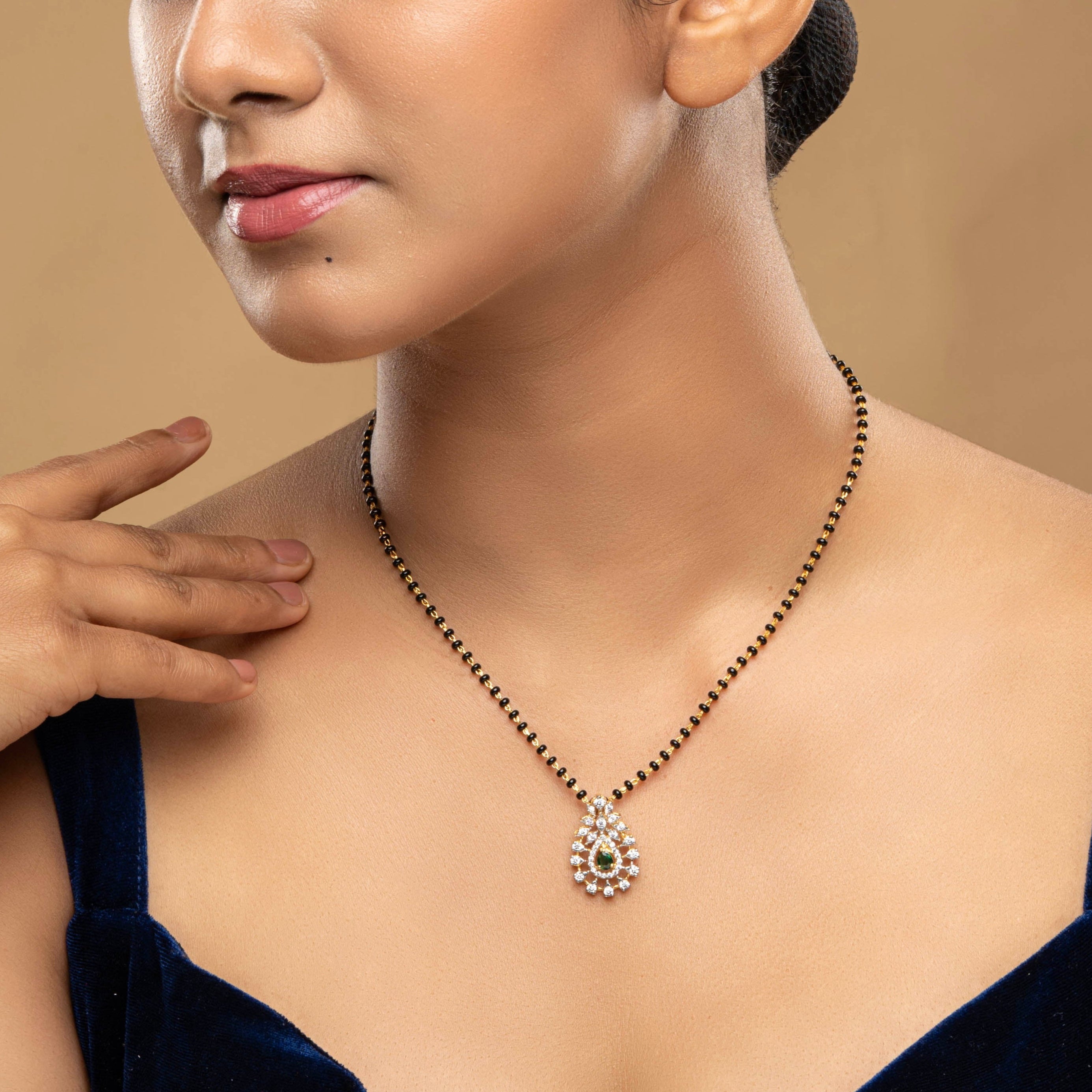 Stone Type : Cubic Zirconia, Synthetic Black Beads, Synthetic Green Stone
