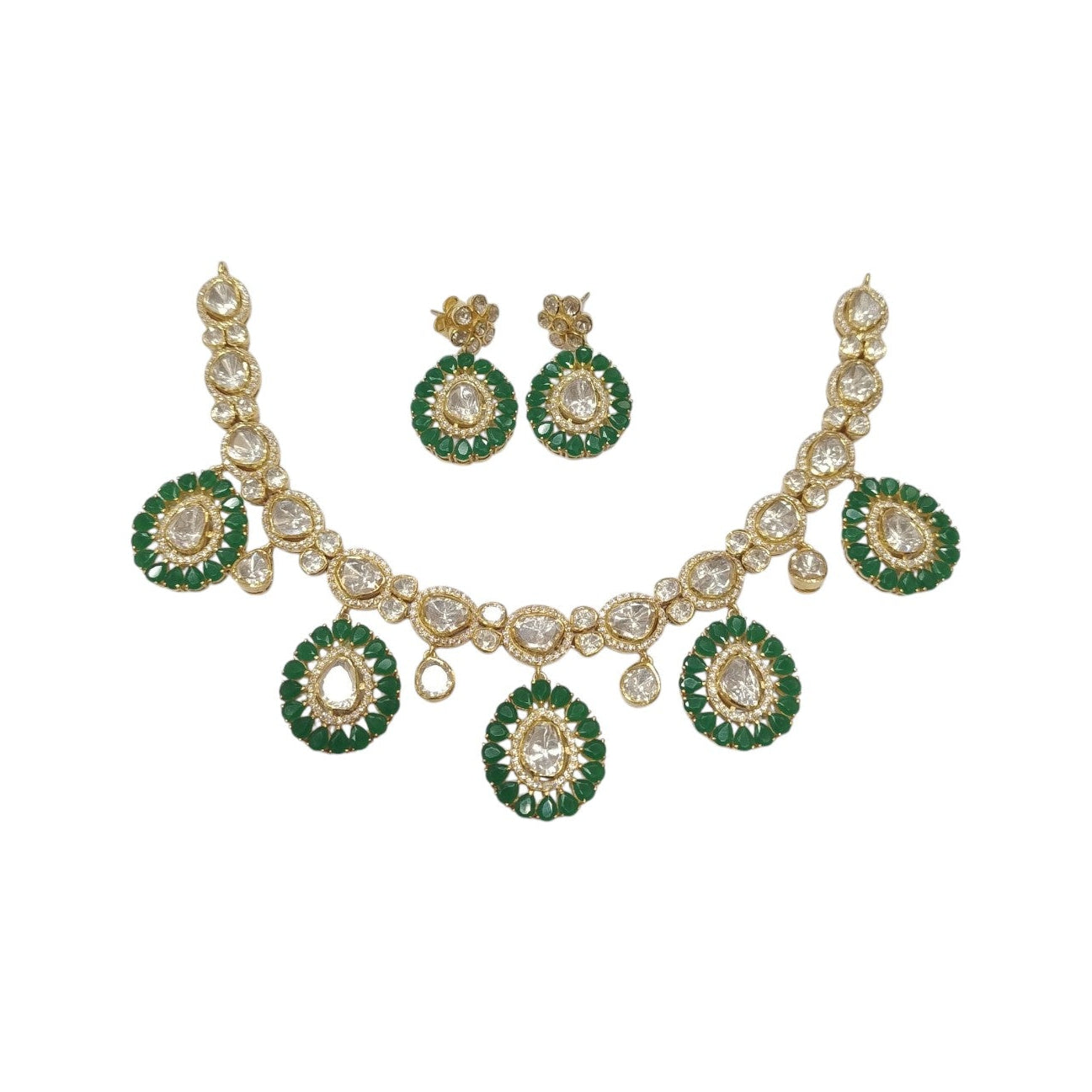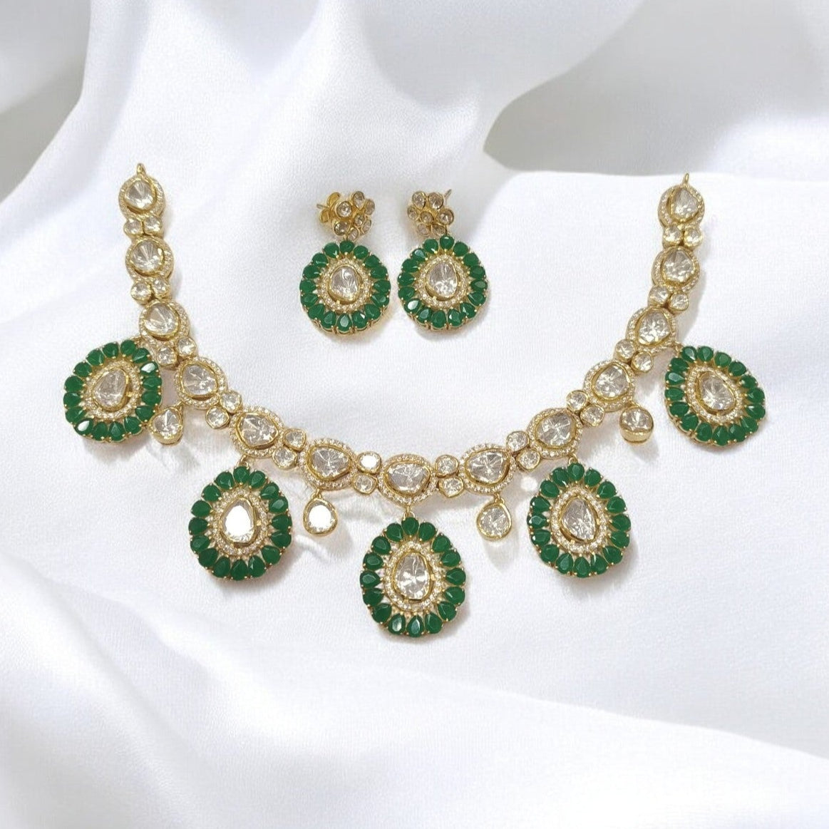 925 Silver Moissanite Polki Aaranya Necklace Set