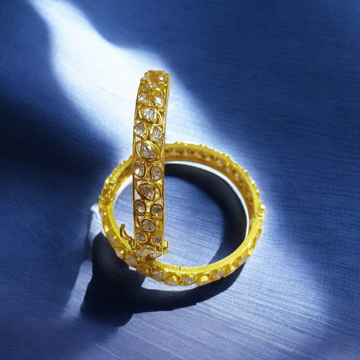 925 Silver Moissanite Polki Amer Bangle Set (Set of 2)