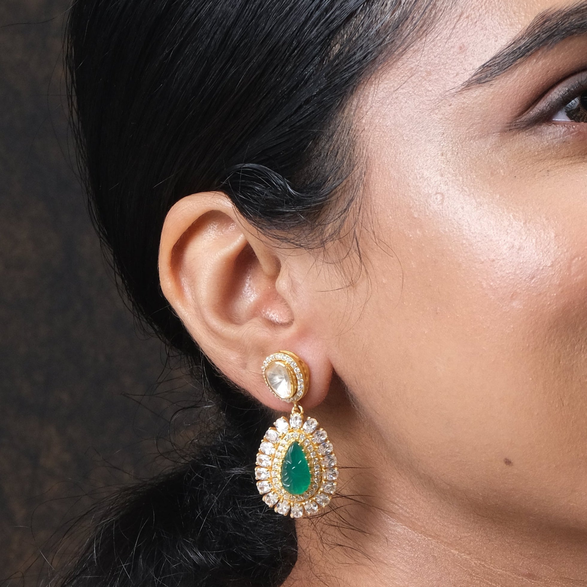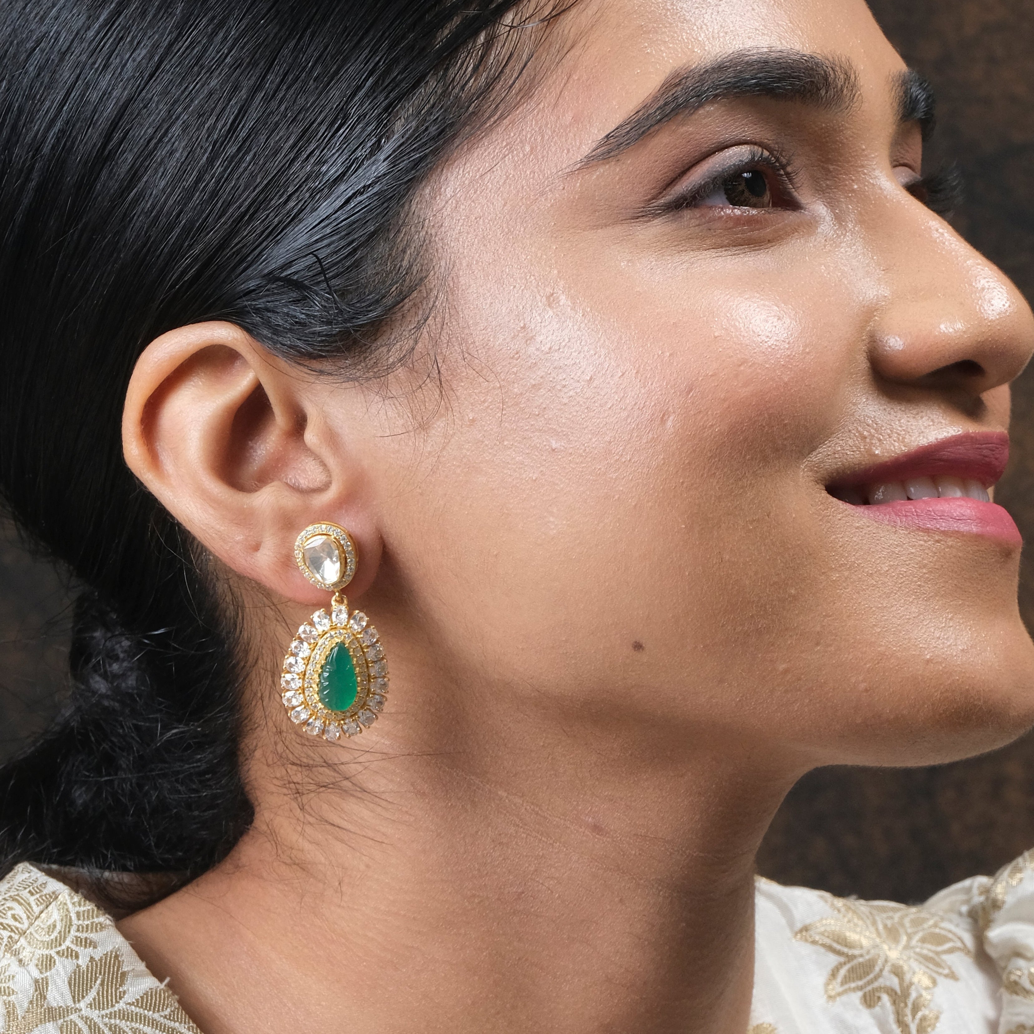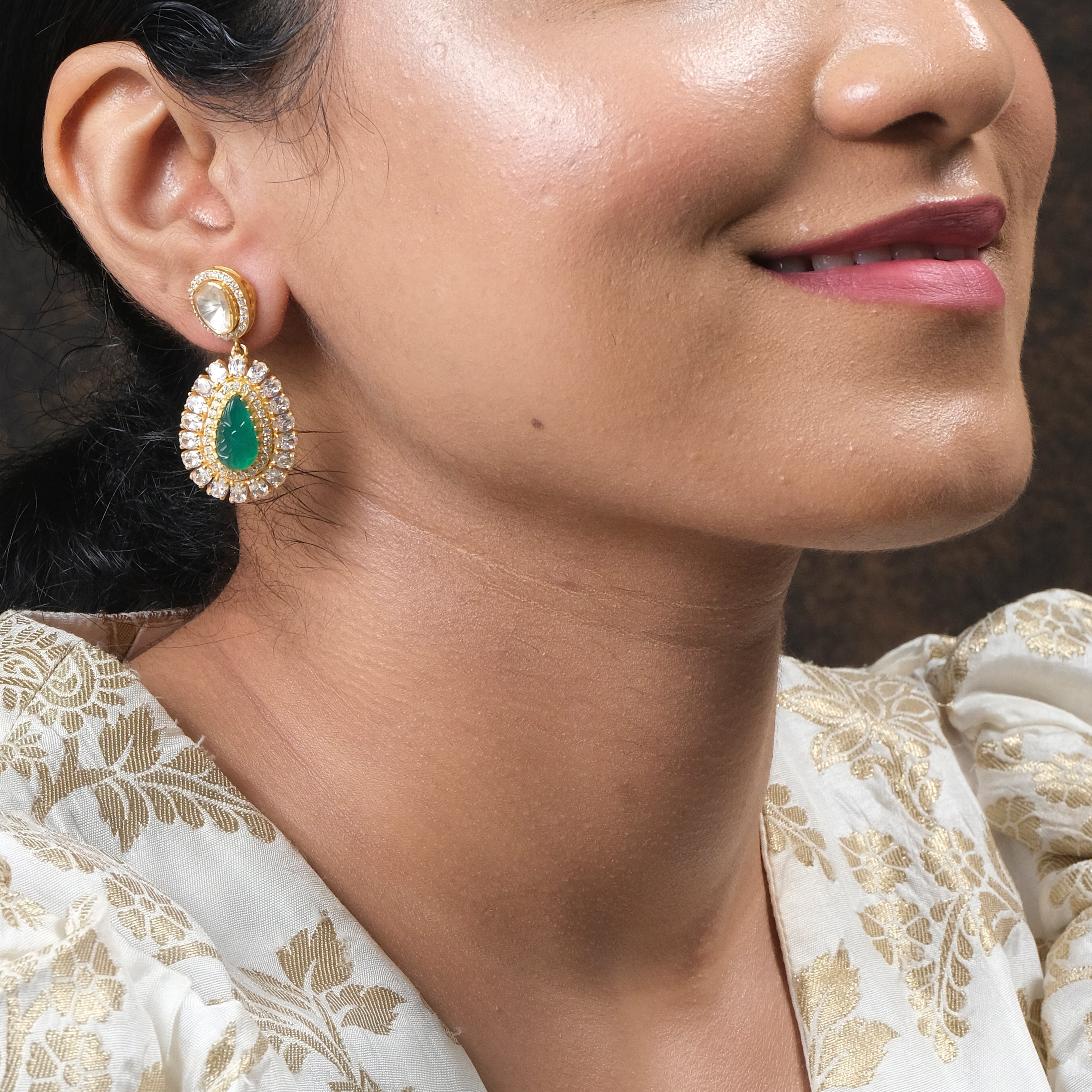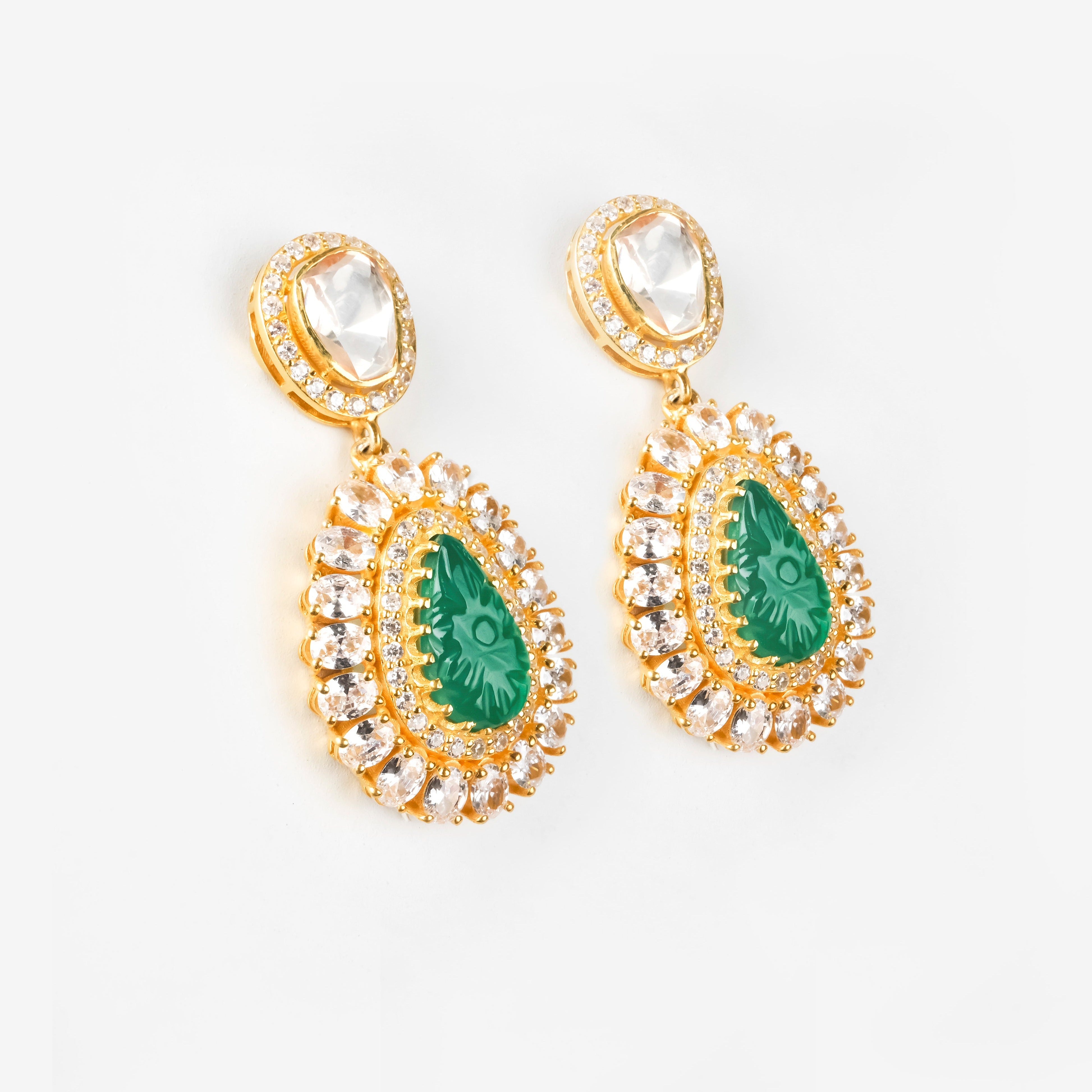 Stone Type : Moissanite Polki, Cubic Zirconia, Synthetic Green Stone