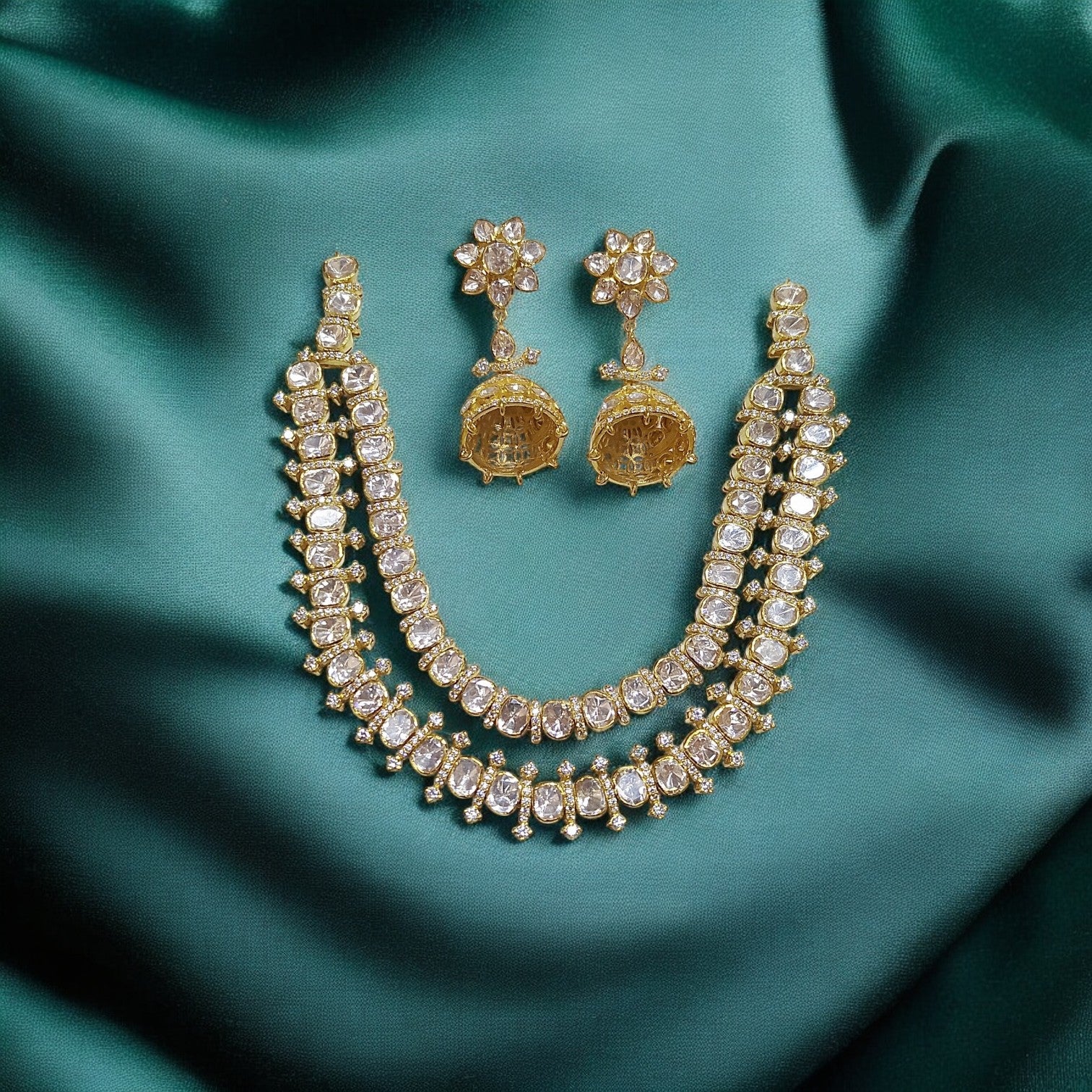 925 Silver Moissanite Polki Bhavya Necklace Set