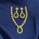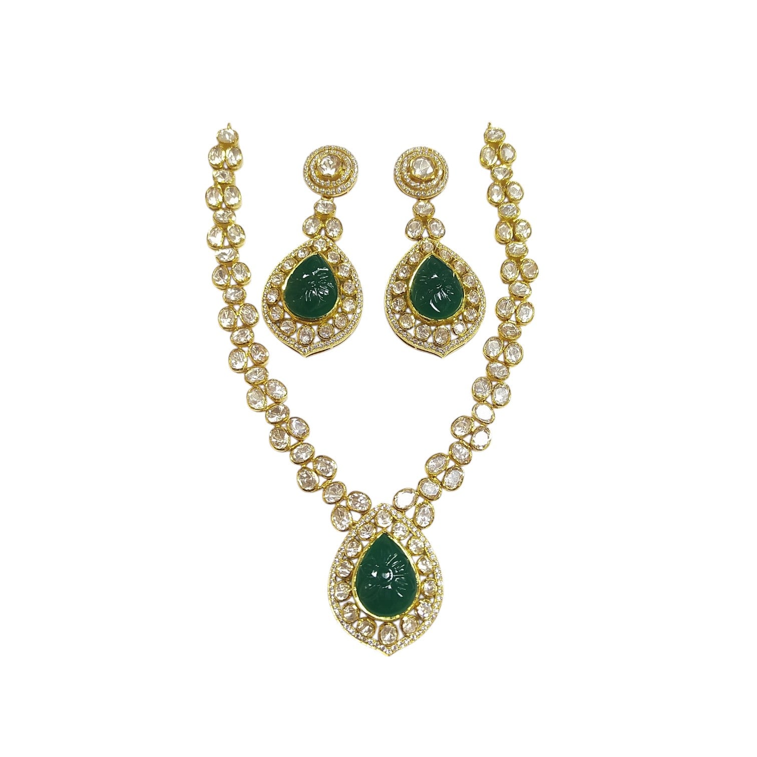 925 Silver Moissanite Polki Carved Green Necklace Set