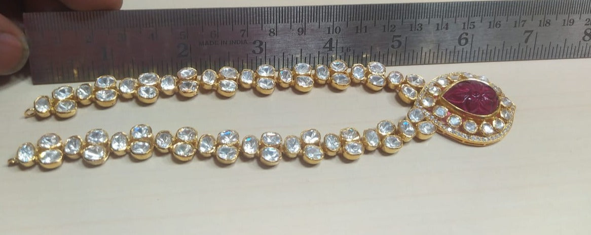 Stone Type : Moissanite Polki, Cubic Zirconia, Synthetic Red Stone