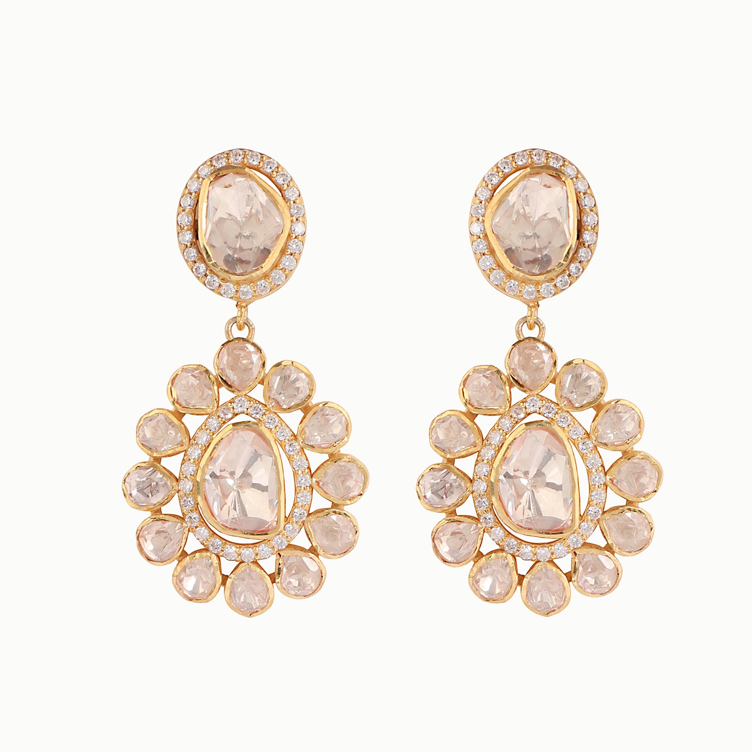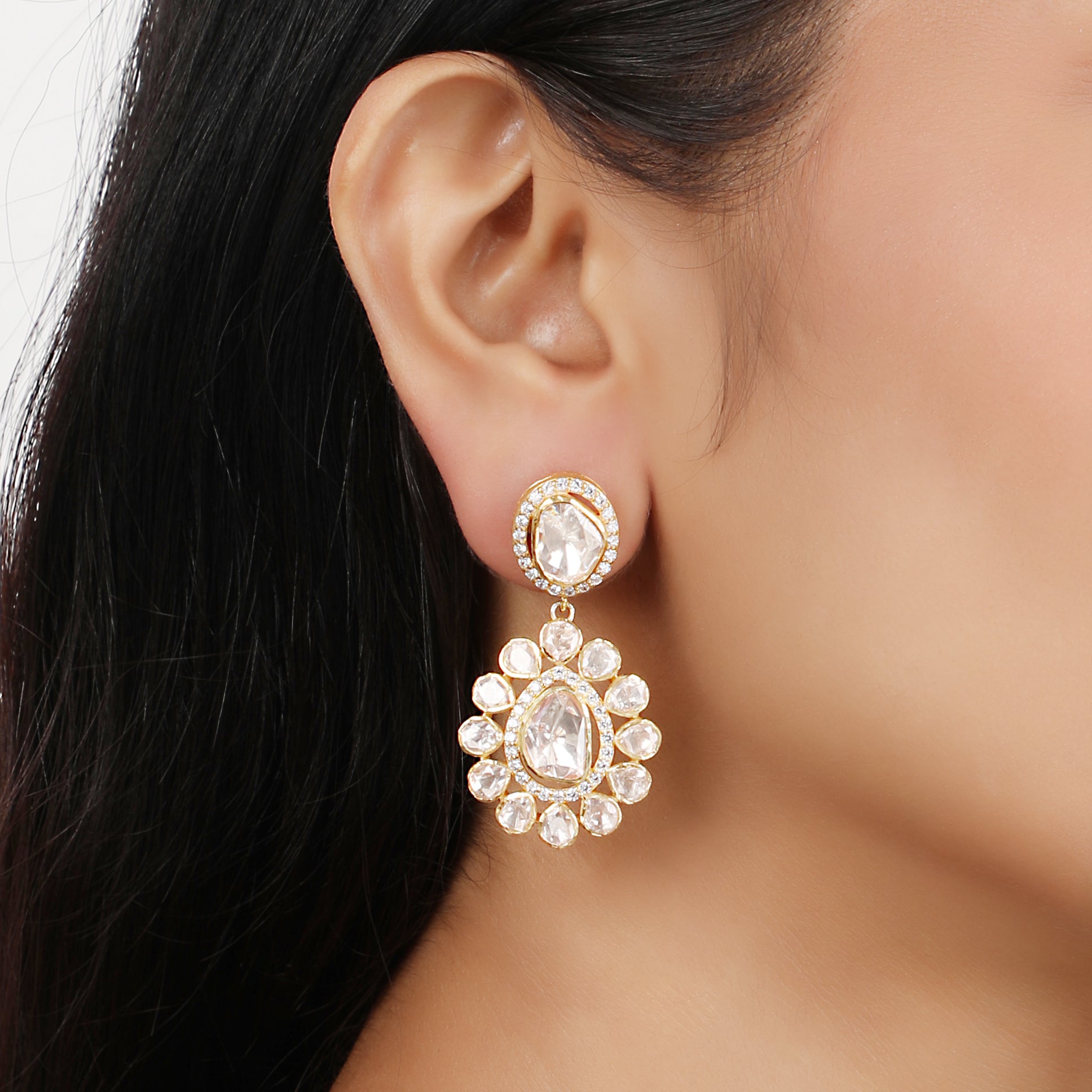 925 Silver Moissanite Polki Celestial Earrings
