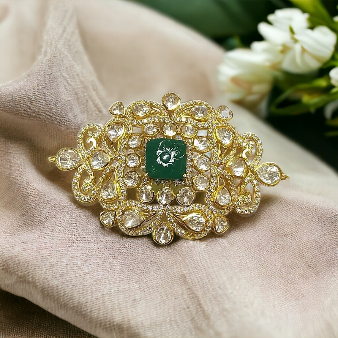 Stone Type : Moissanite Polki, Cubic Zirconia, Synthetic Green Stone