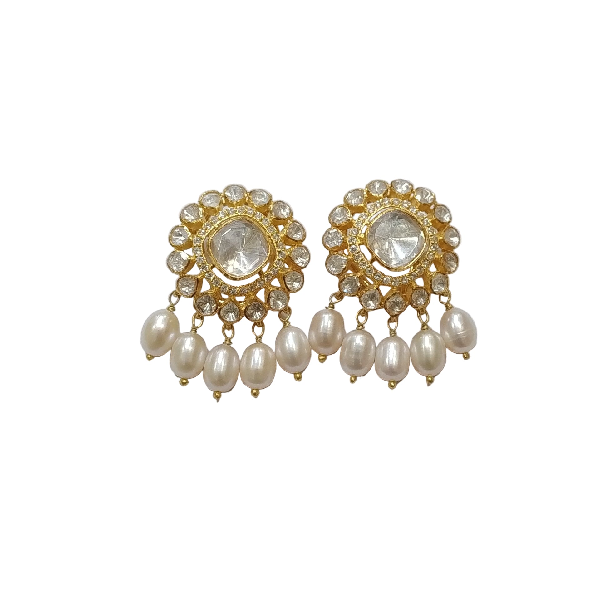Stone Type : Moissanite polki, cubic zirconia, synthetic pearls