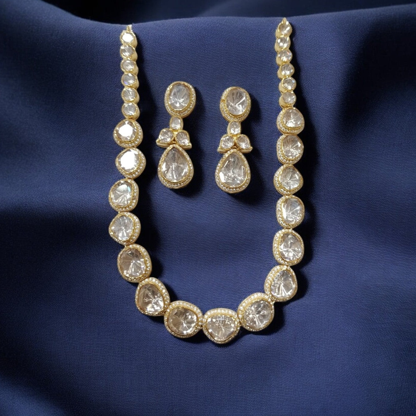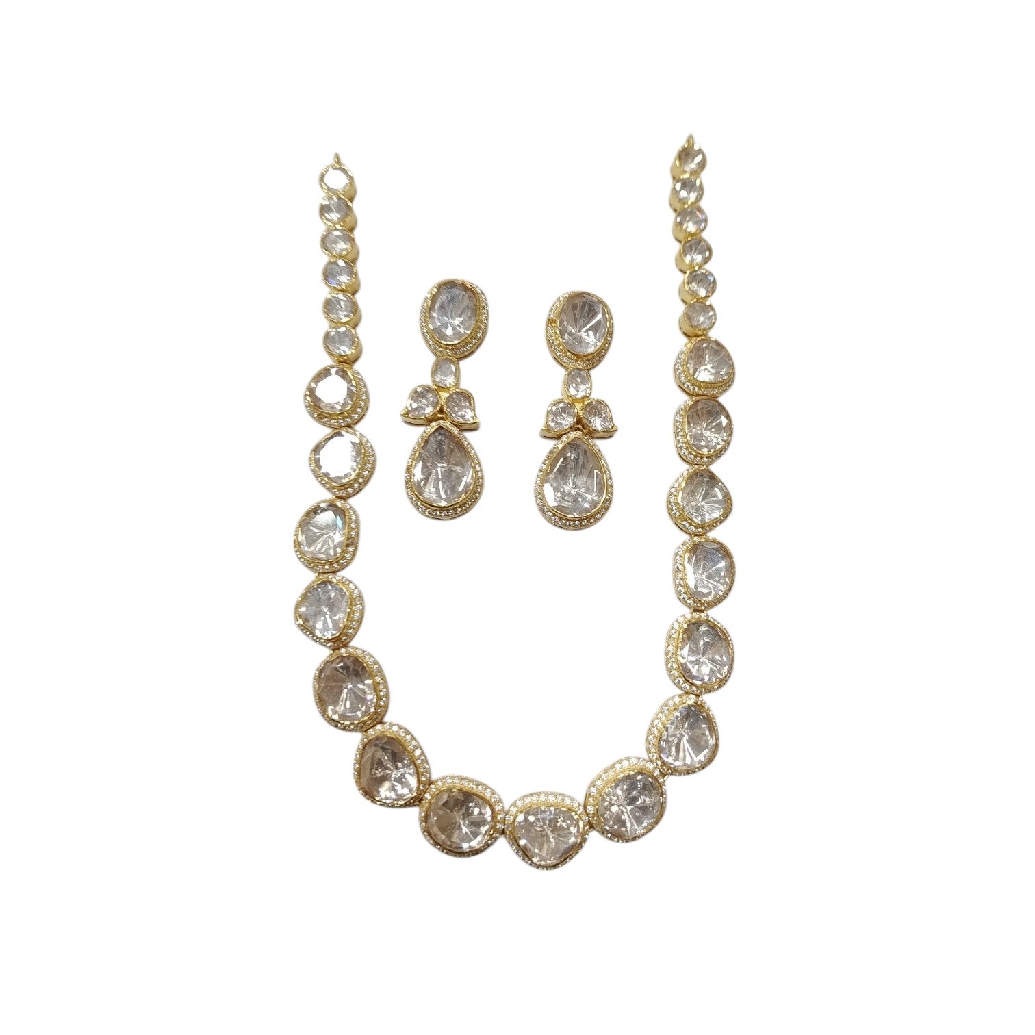 925 Silver Moissanite Polki Ektaara Necklace Set
