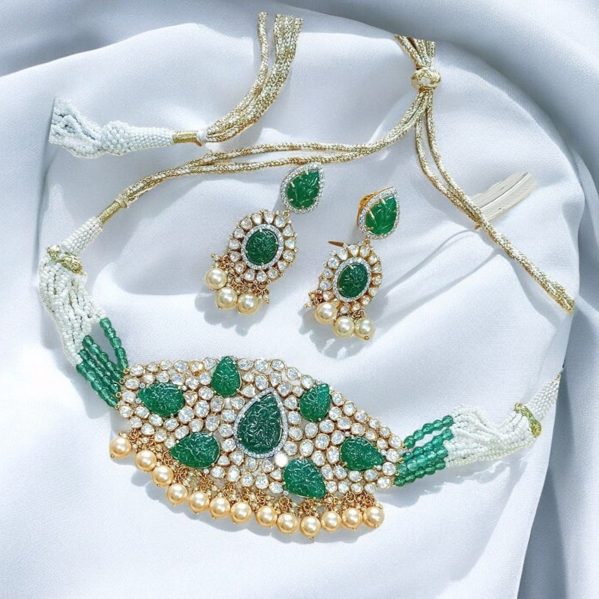 Stone Type : Moissanite polki, cubic zirconia, synthetic coloured stone