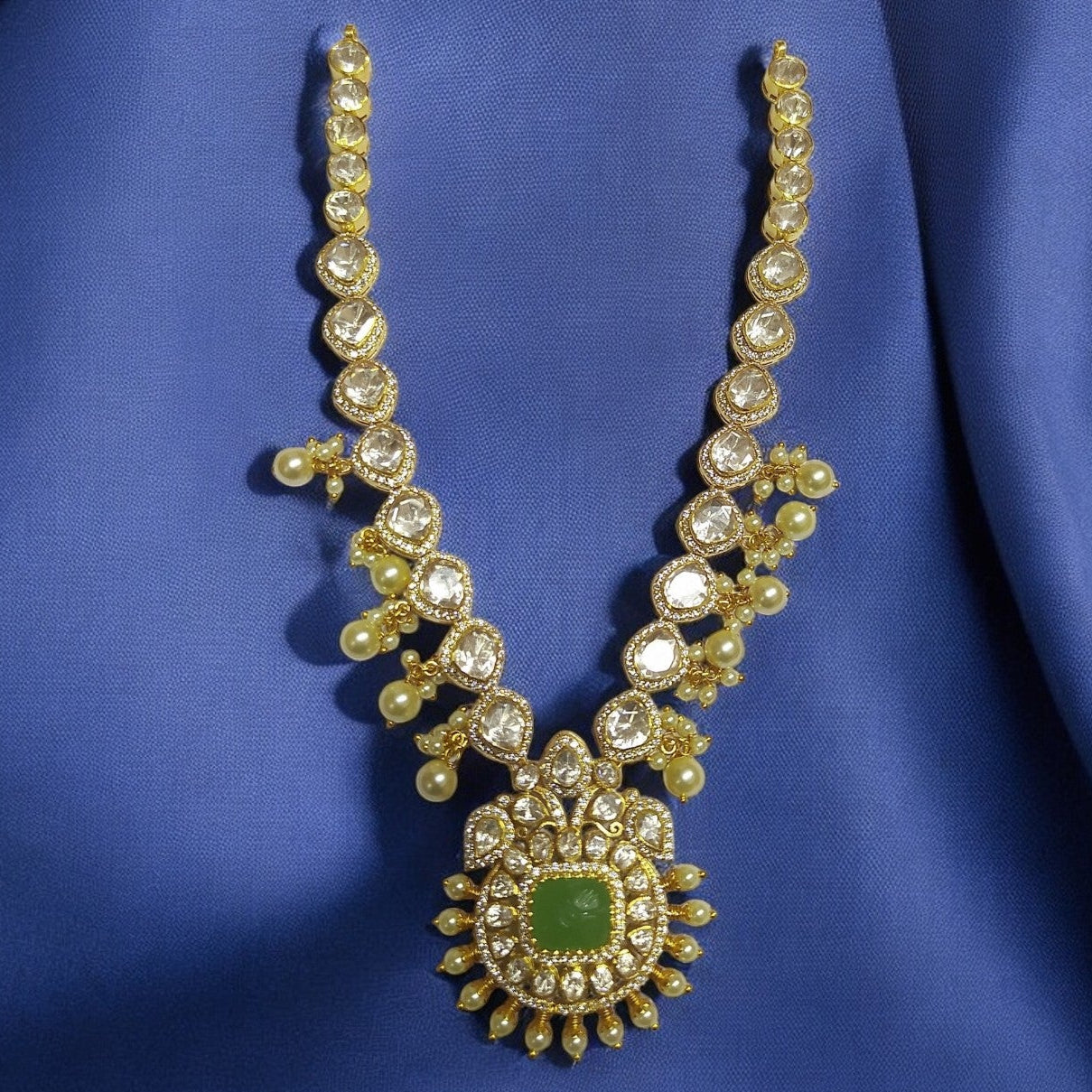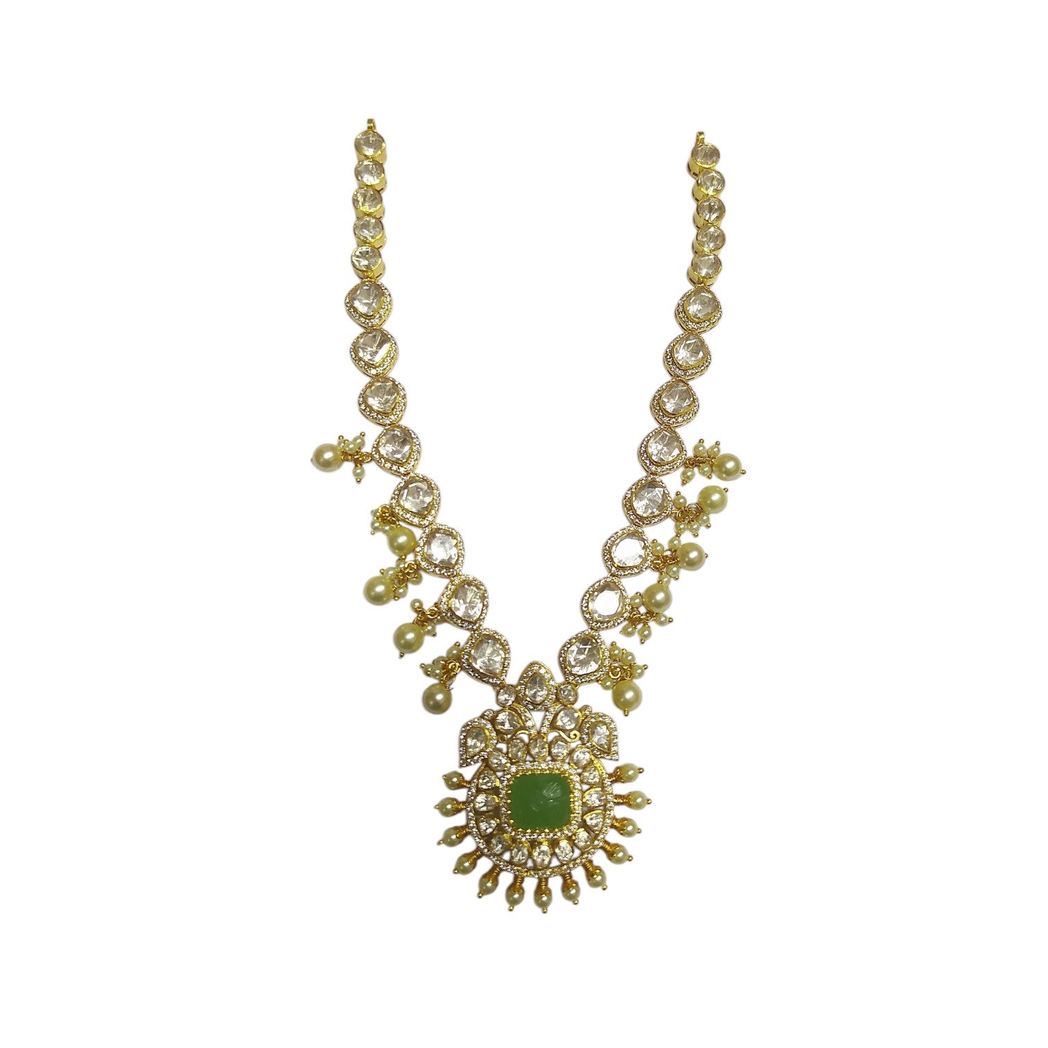 925 Silver Moissanite Polki Emerald Mala Necklace