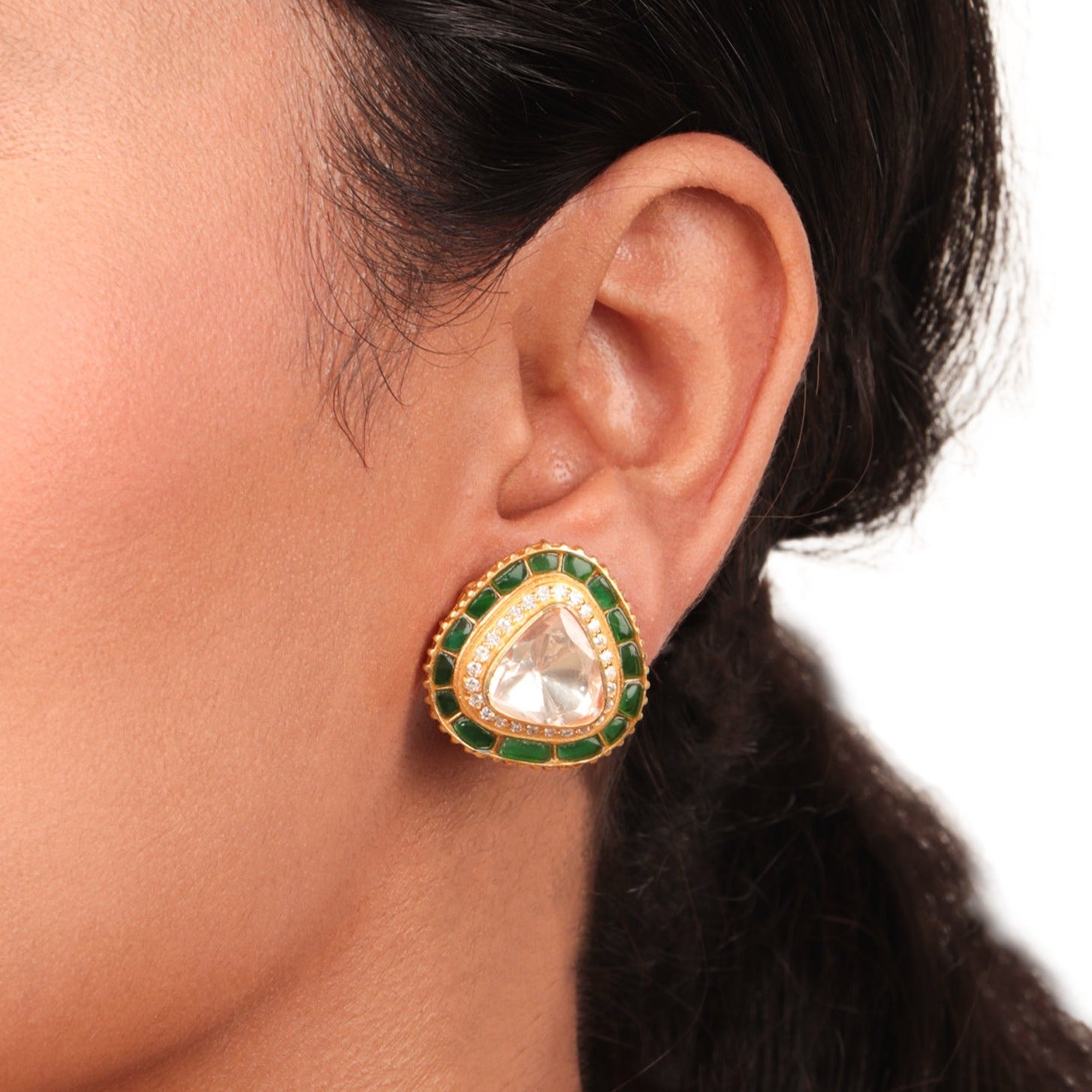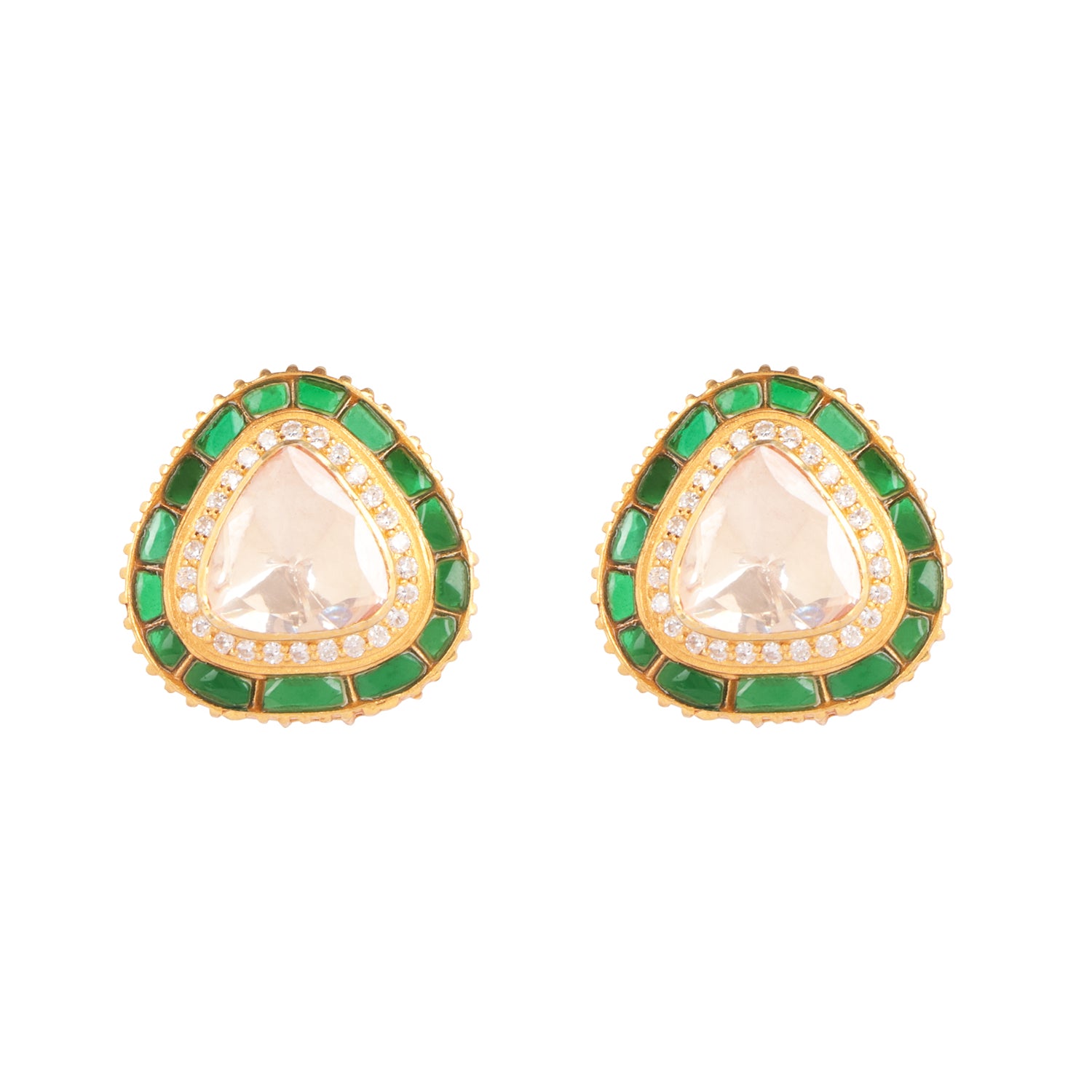 925 Silver Moissanite Polki Green Sika Earrings
