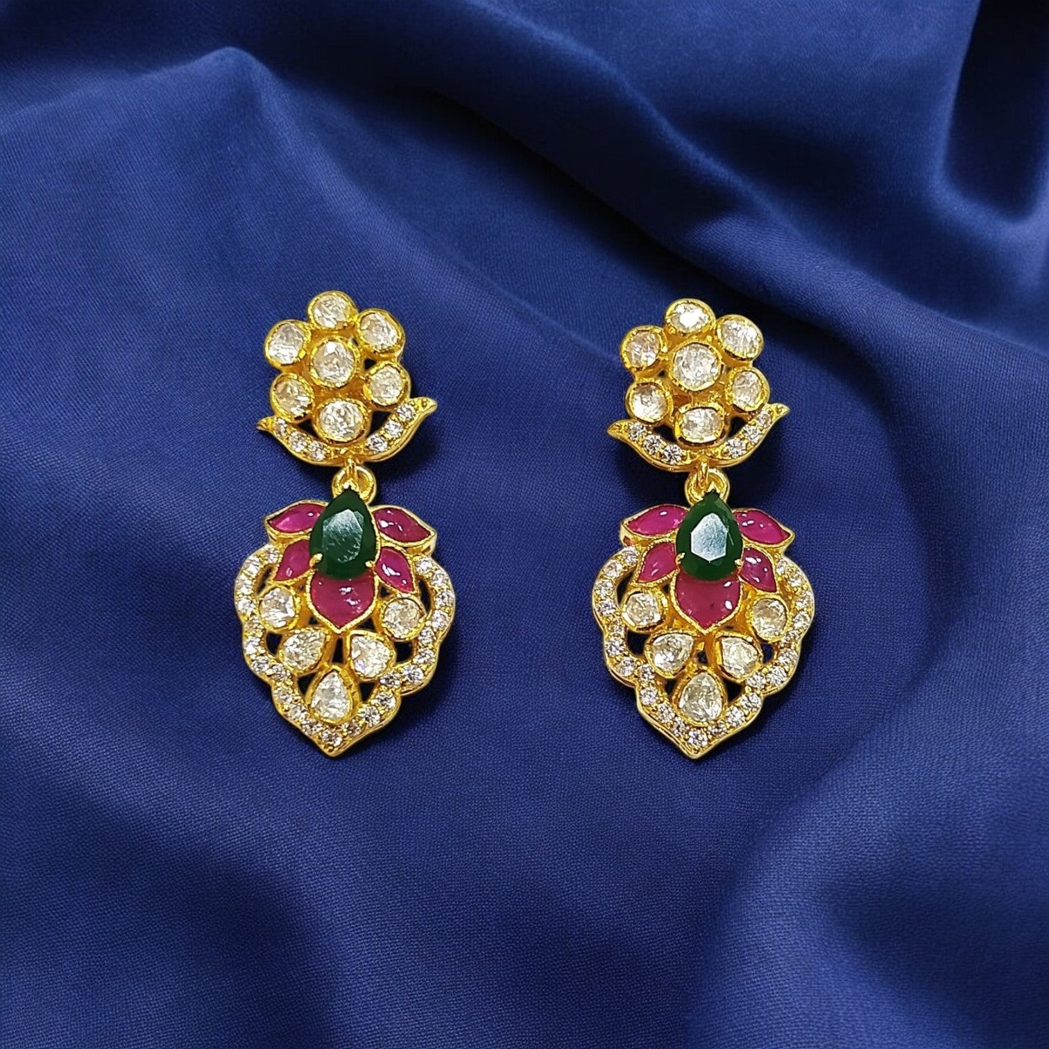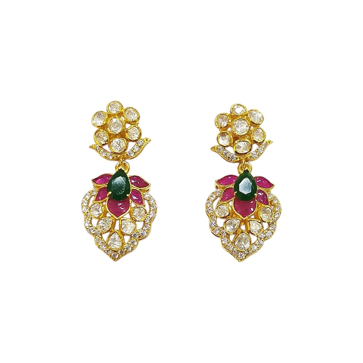 Stone Type : Moissanite Polki, Cubic Zirconia, Synthetic Green Stone, Synthetic Pink Stone