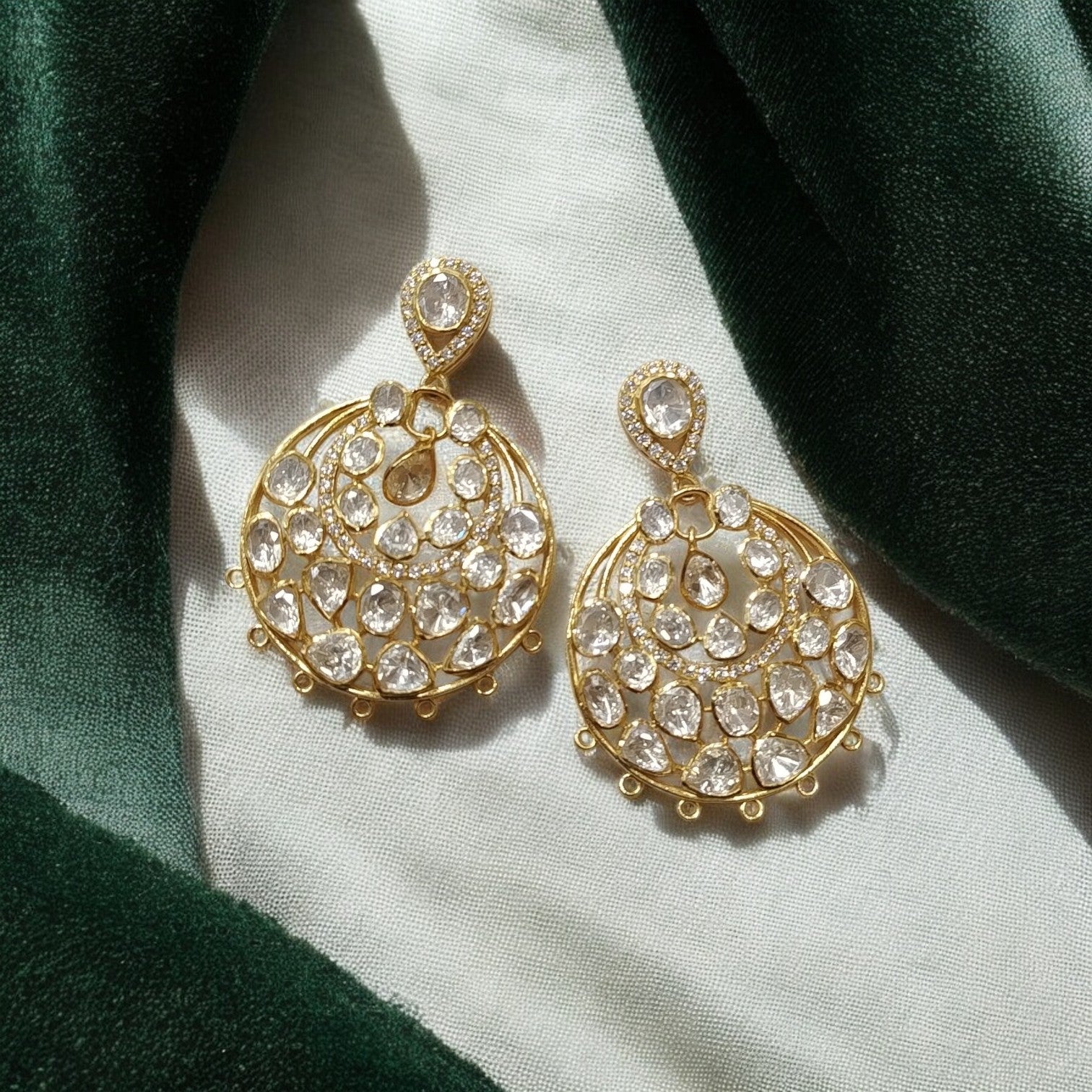 925 Silver Moissanite Polki Ira Earrings