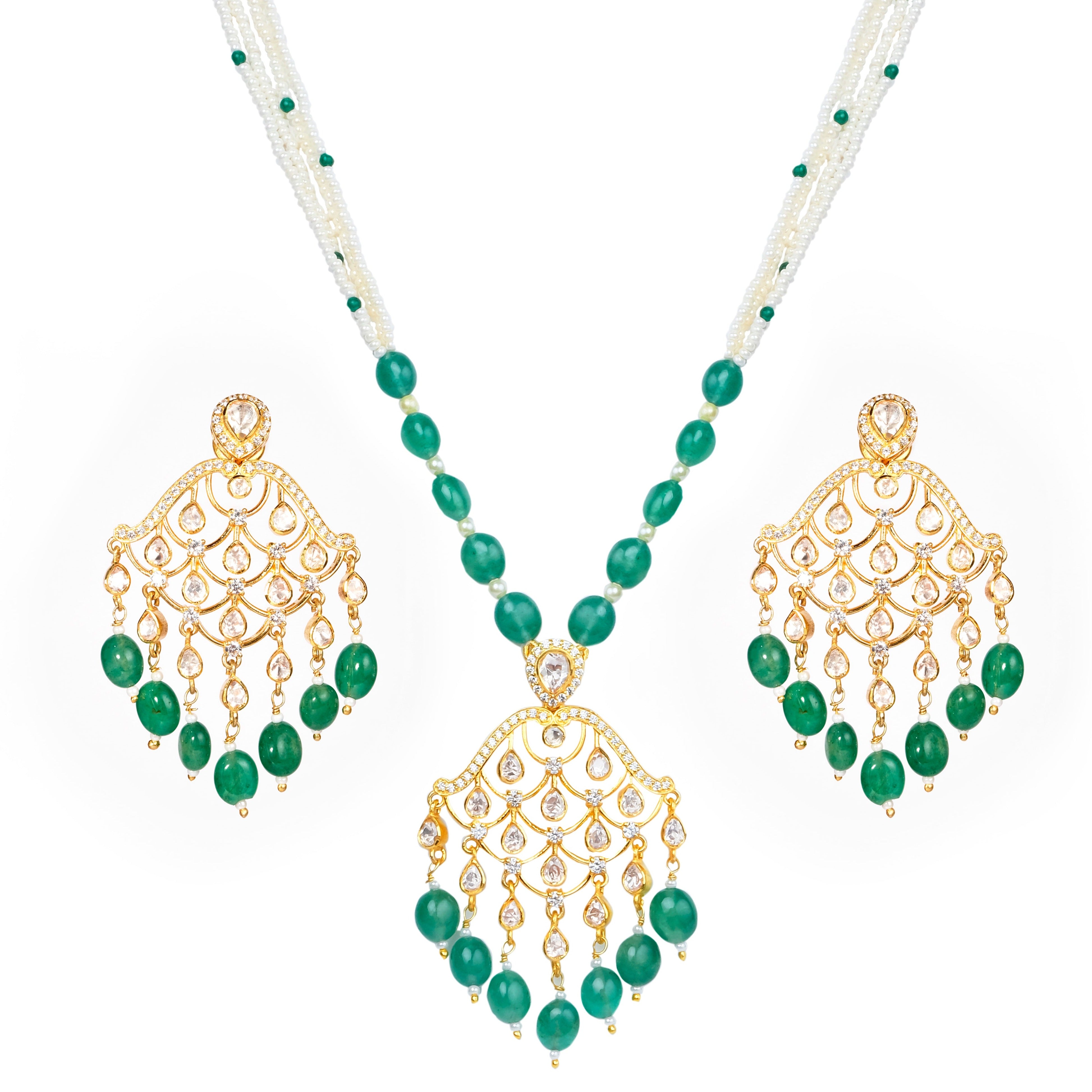 925 Silver Moissanite Polki Jhumar Necklace Set