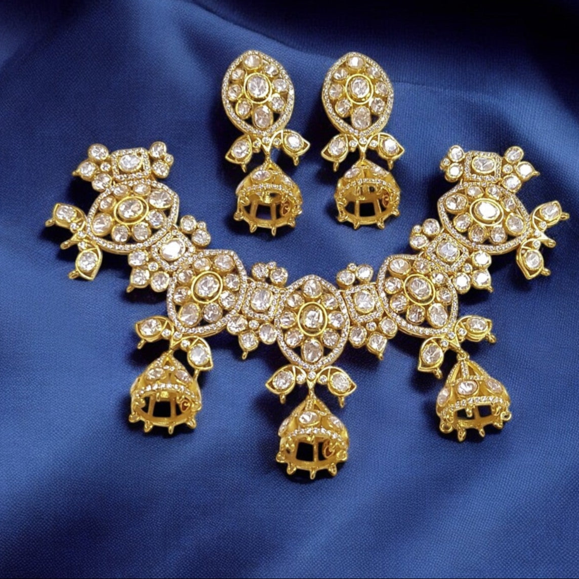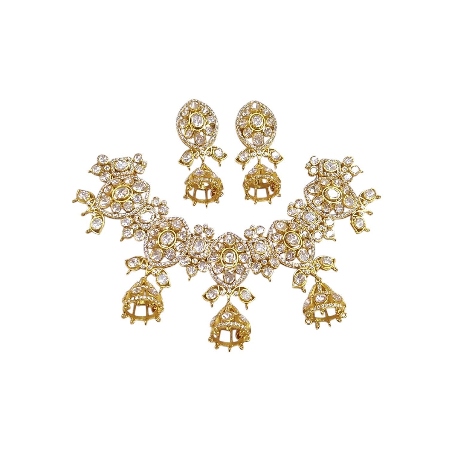 925 Silver Moissanite Polki Jhumki Necklace
