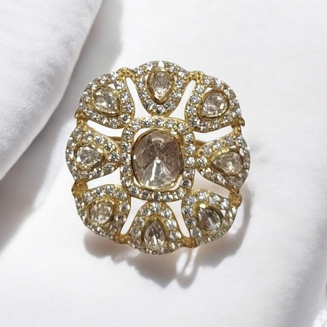 925 Silver Moissanite Polki Kavya Ring