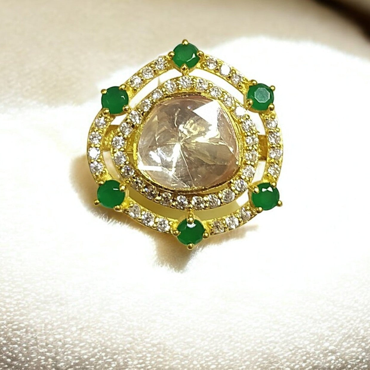 Stone Type : Moissanite Polki, Cubic Zirconia, Synthetic Green Stone