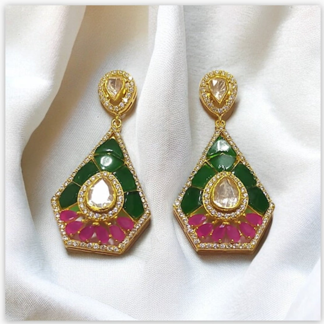 925 Silver Moissanite Polki Mishti Earrings