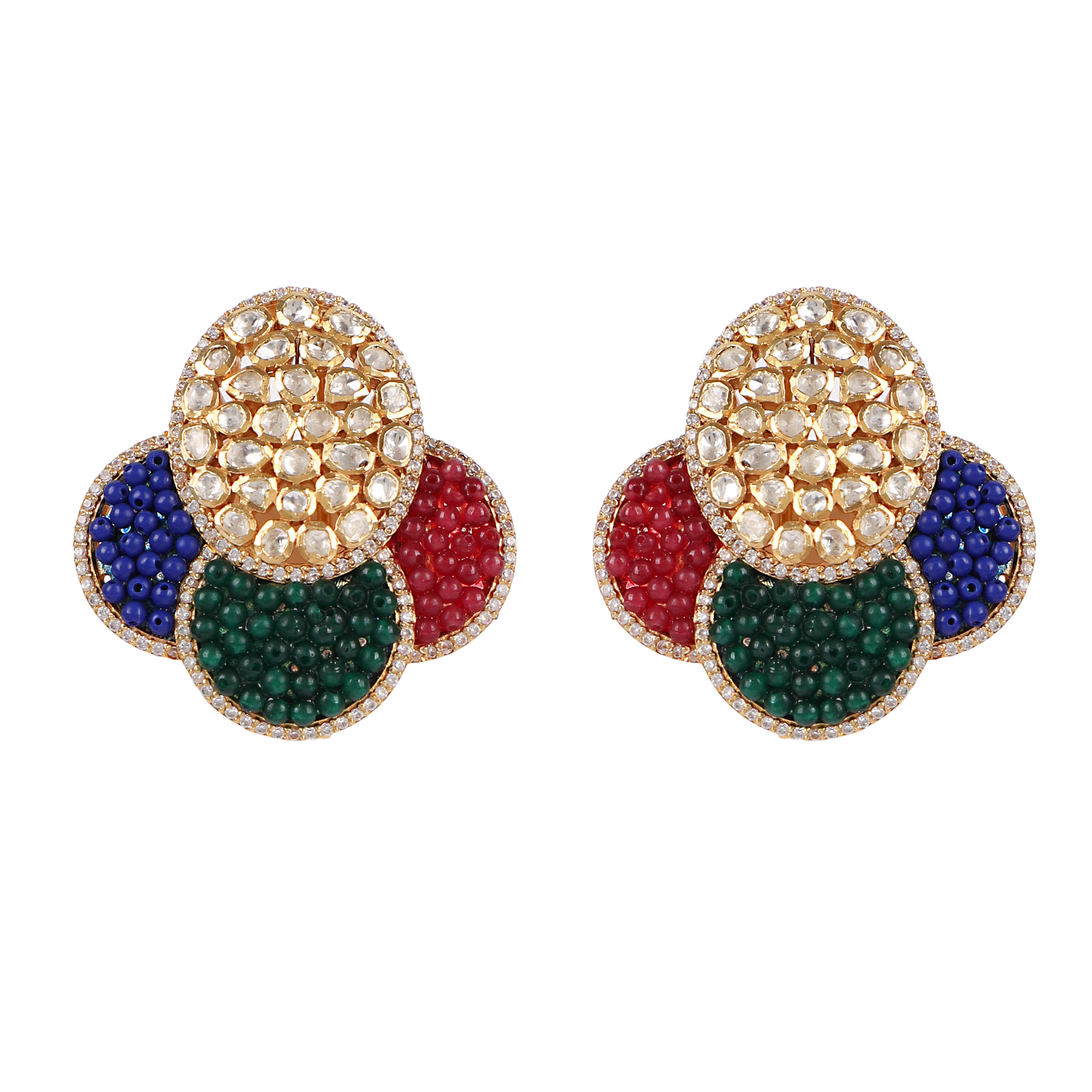 Stone Type : moissanite polki, synthetic coloured beads, cubic zirconia