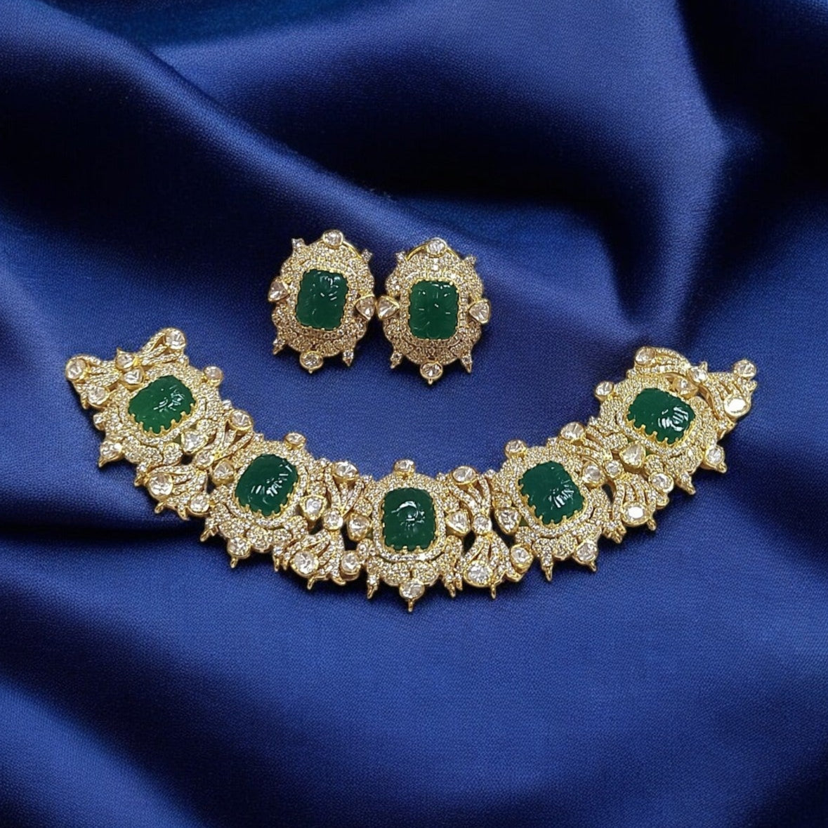 Stone Type : Moissanite Polki, Cubic Zirconia, Synthetic Green Stone