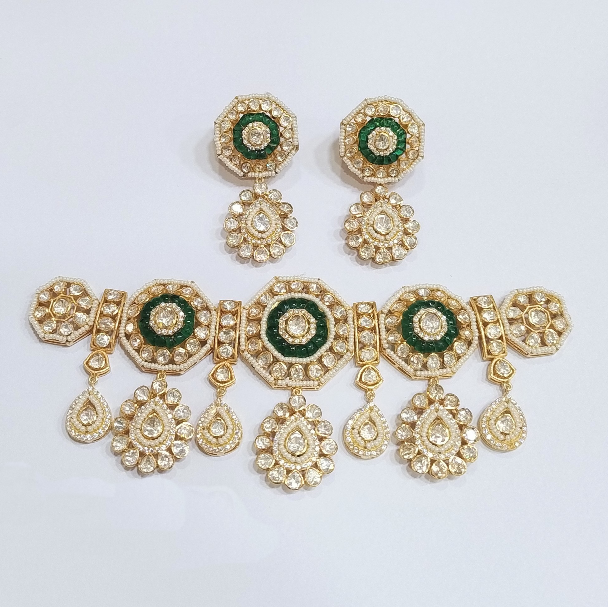 Stone Type : moissanite polki, cubic zirconia, synthetic green stone