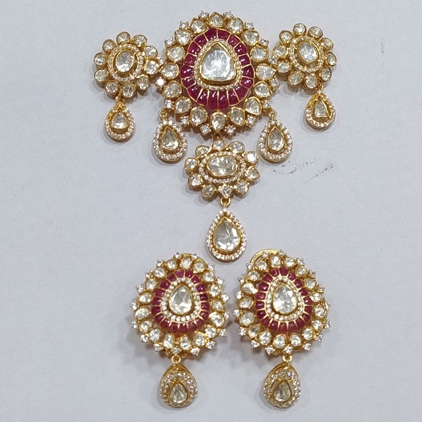 Stone Type : moissanite polki, cubic zirconia, synthetic red stone