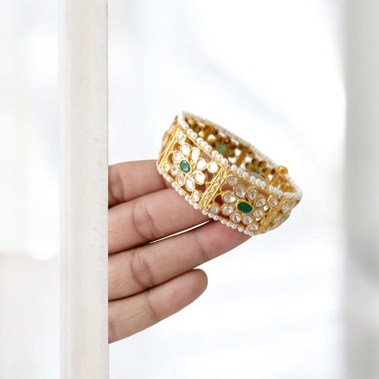 Stone Type : Moissanite Polki, Synthetic Green Stone, Synthetic Pearls