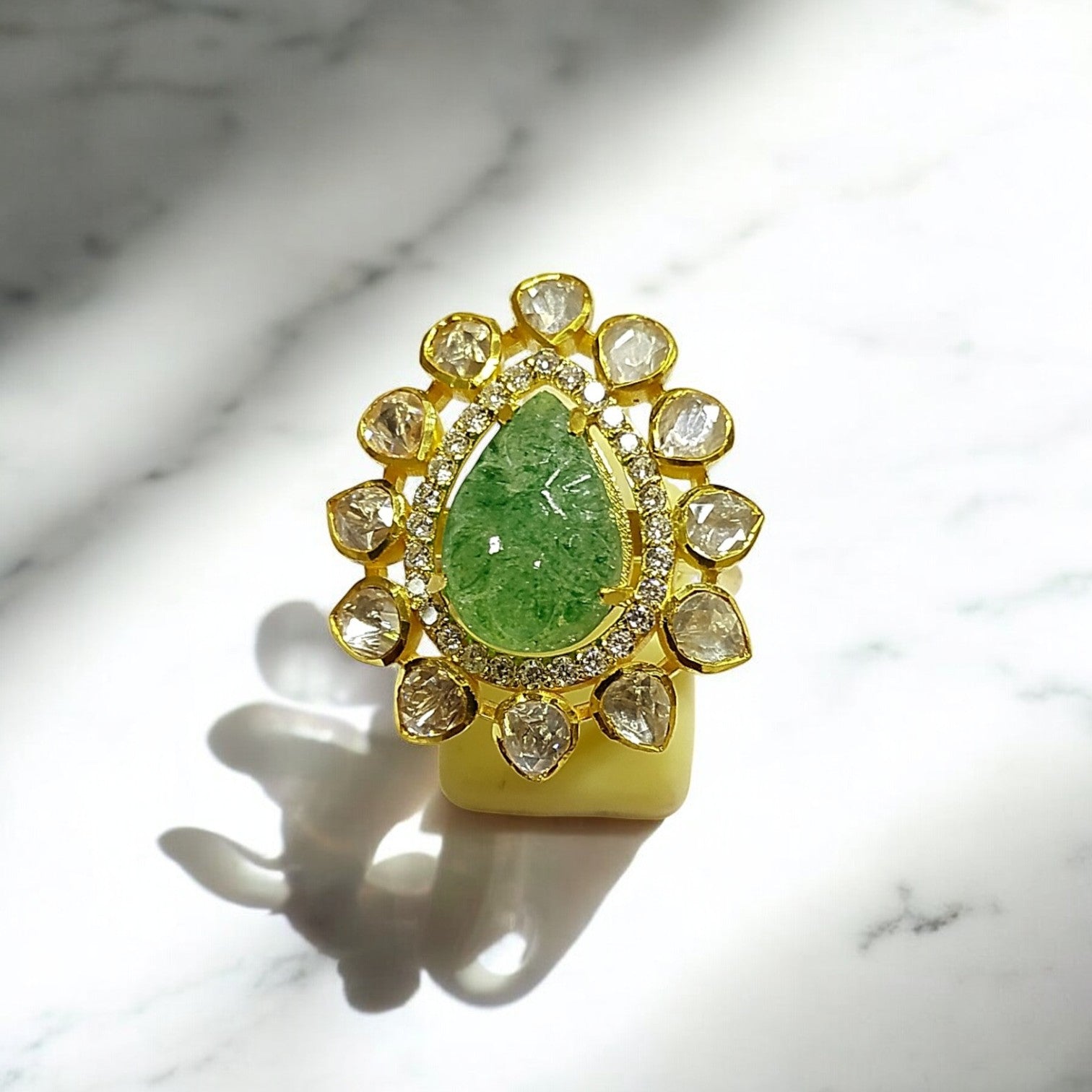 Stone Type : Moissanite Polki, Cubic Zirconia, Synthetic Green Stone