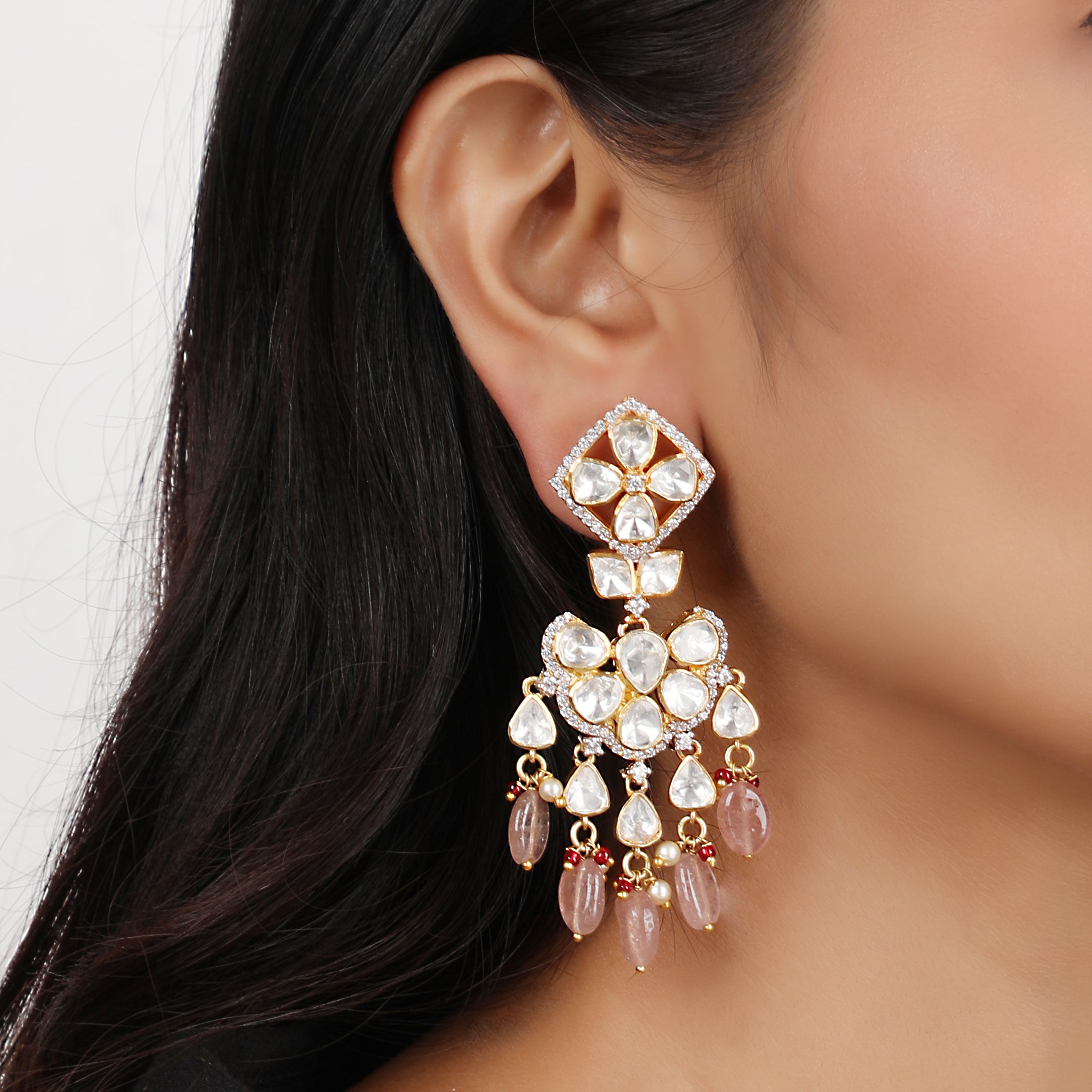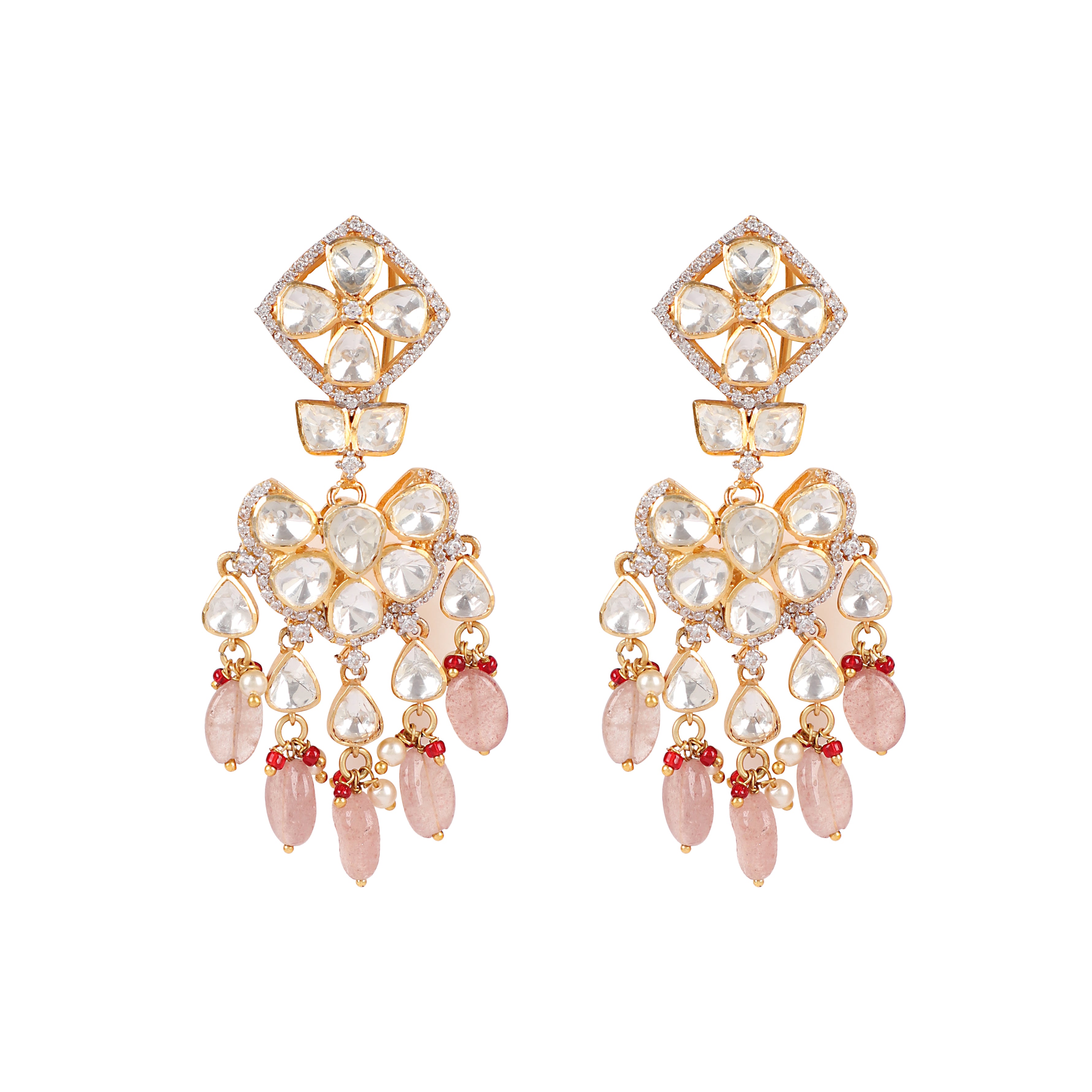 925 Silver Moissanite Polki Pastel Pink Earrings