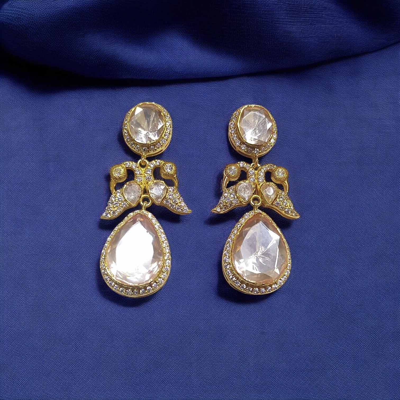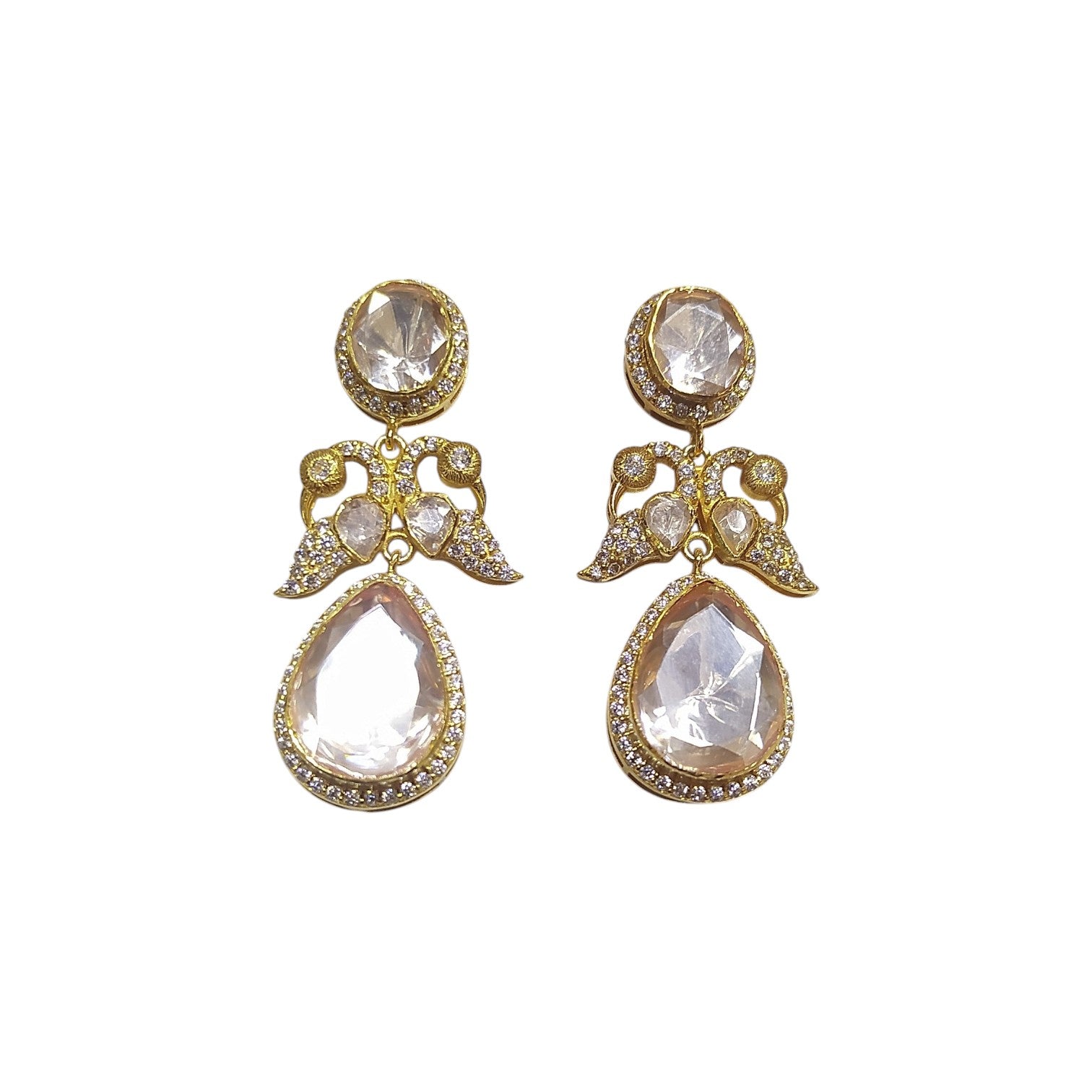 925 Silver Moissanite Polki Peacock Earrings