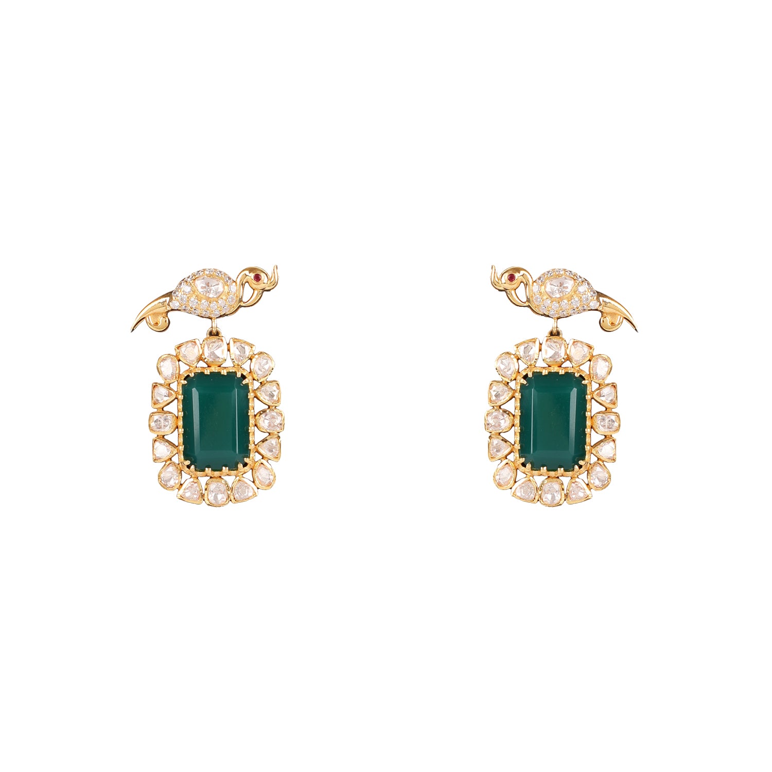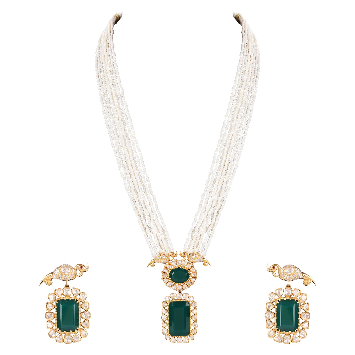 Stone Type : moissanite polki, cubic zirconia, synthetic green stone and pearls