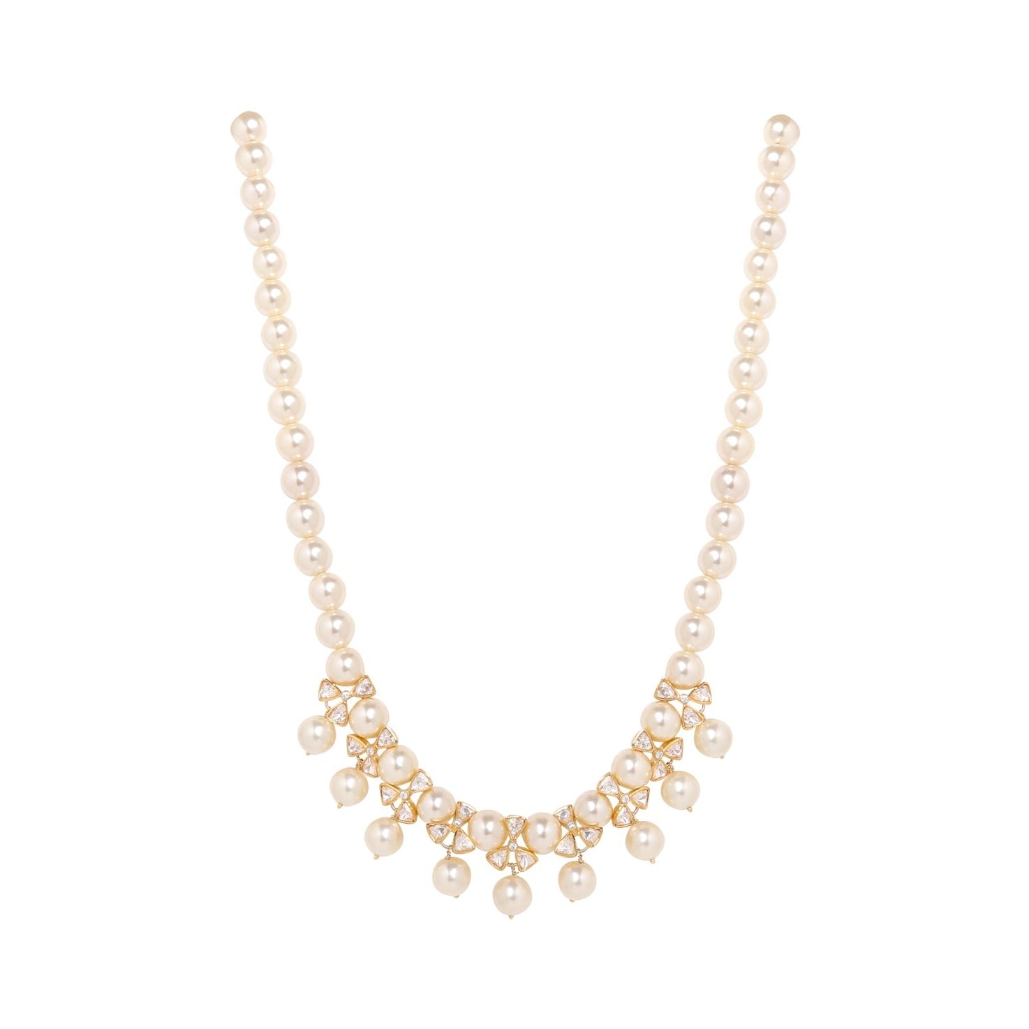 925 Silver Moissanite Polki Diana Pearl Necklace