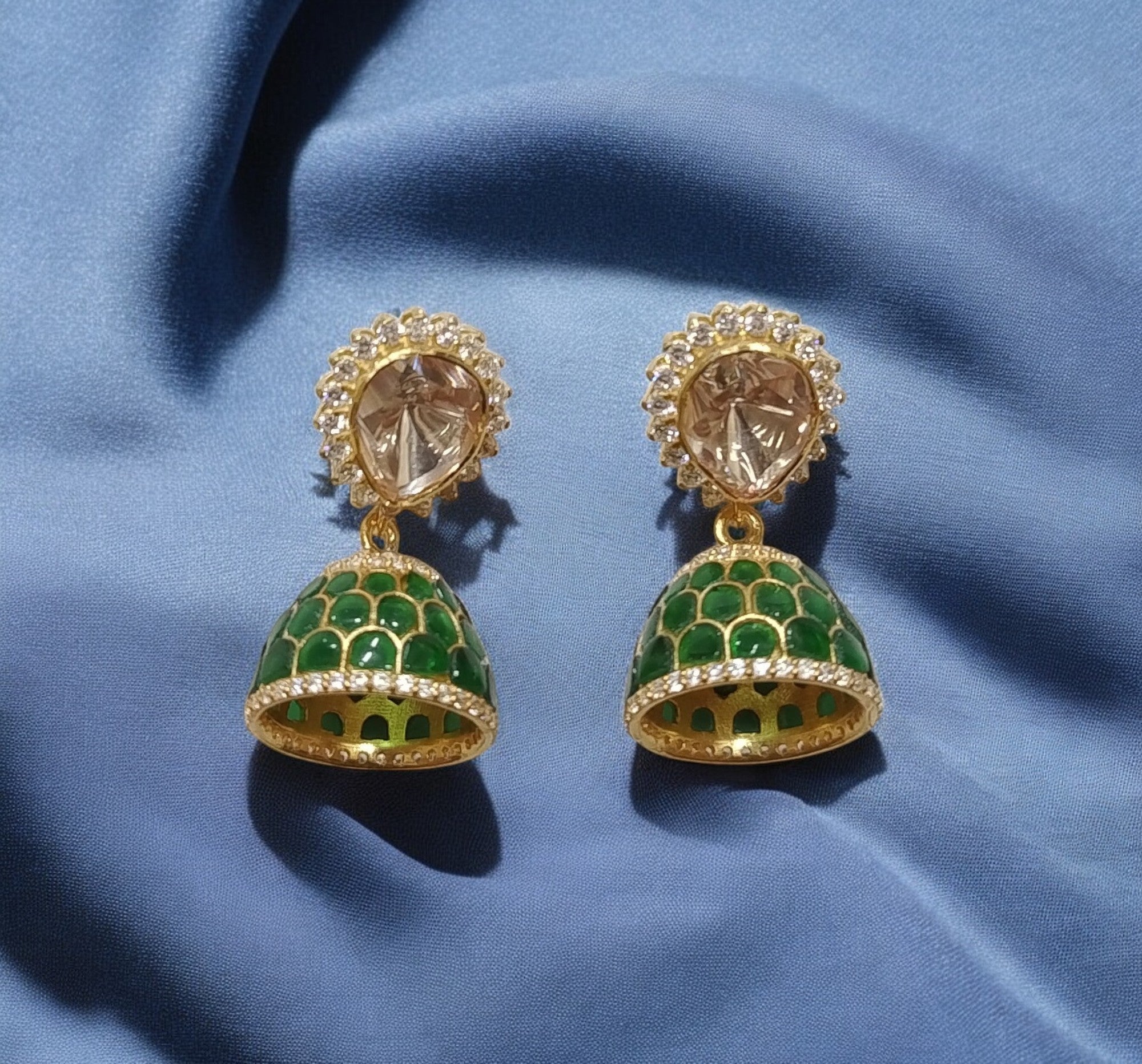 Stone Type : Moissanite Polki, Cubic Zirconia, Synthetic Green Stone