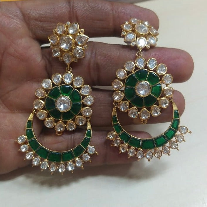 925 Silver Moissanite Polki Queens Chandbalis