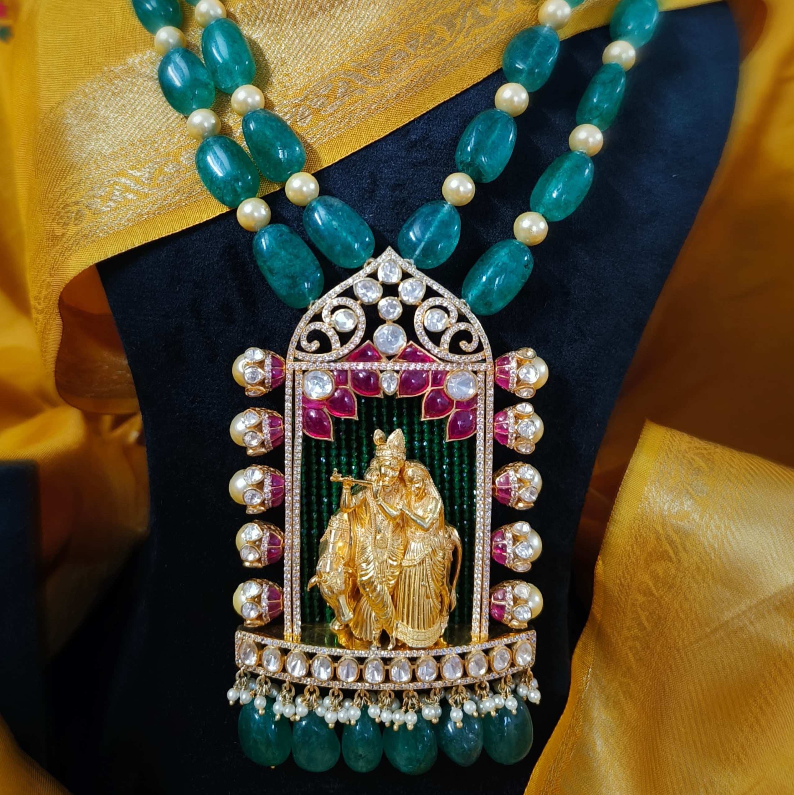 925 Silver Moissanite Polki Radha Krishna Necklace Set