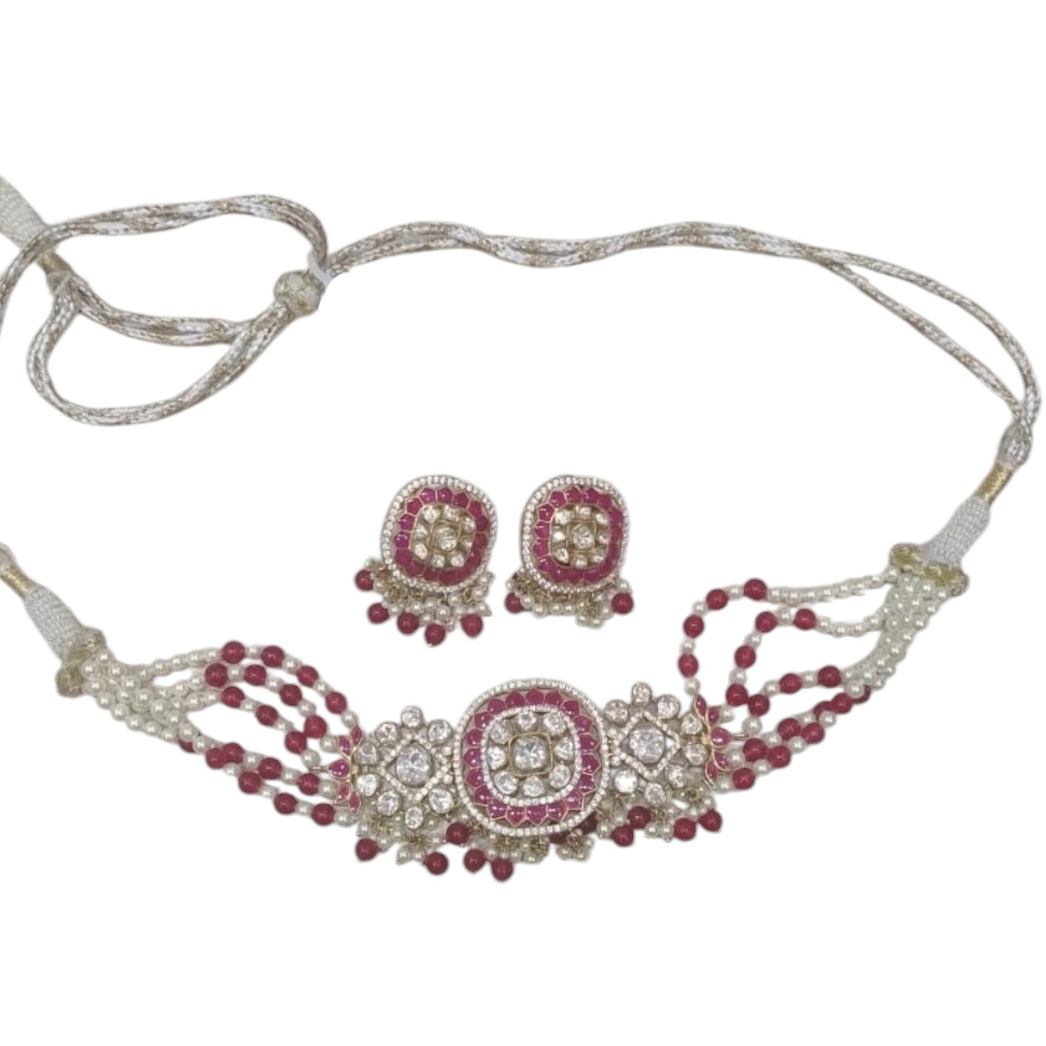 925 Silver Moissanite Polki Red Pearl Necklace Set