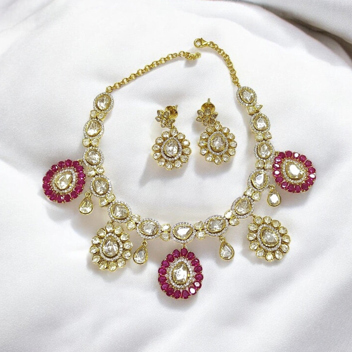 Stone Type : Moissanite polki, cubic zirconia, synthetic coloured stone