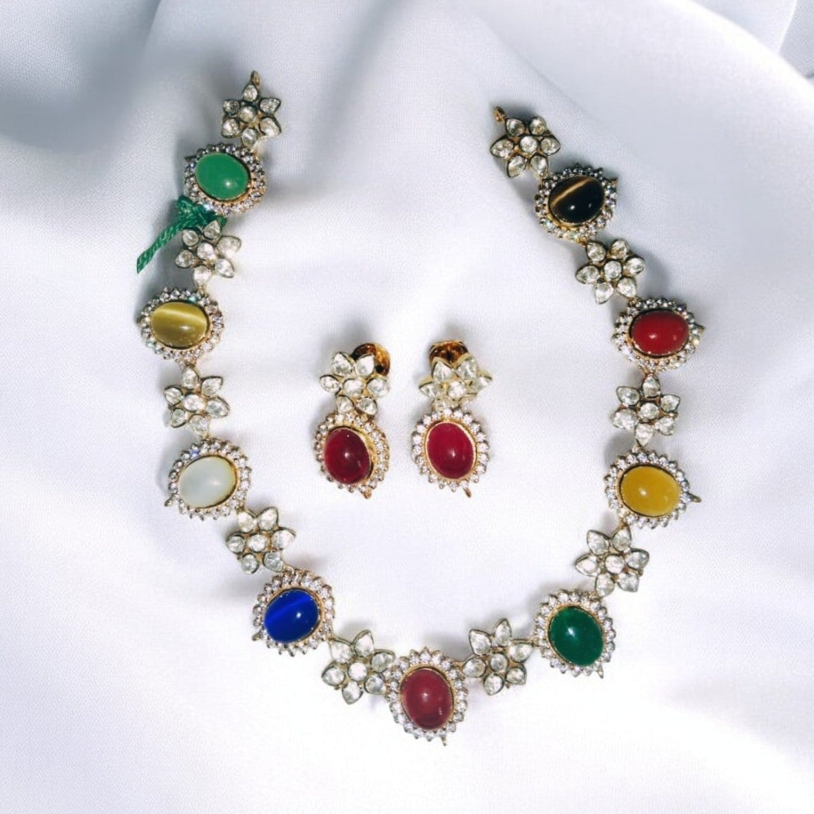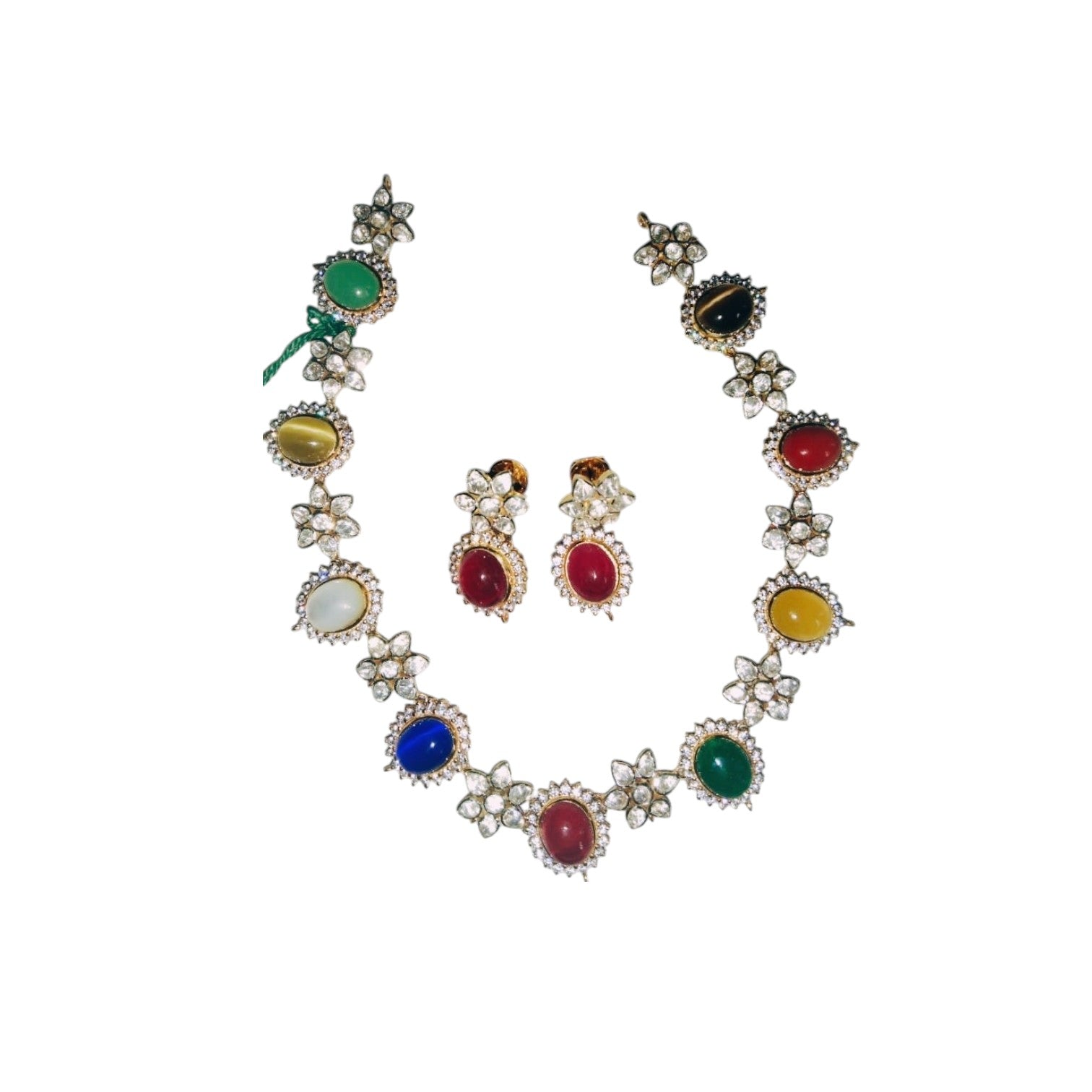 925 Silver Moissanite Polki Satrangi Necklace Set